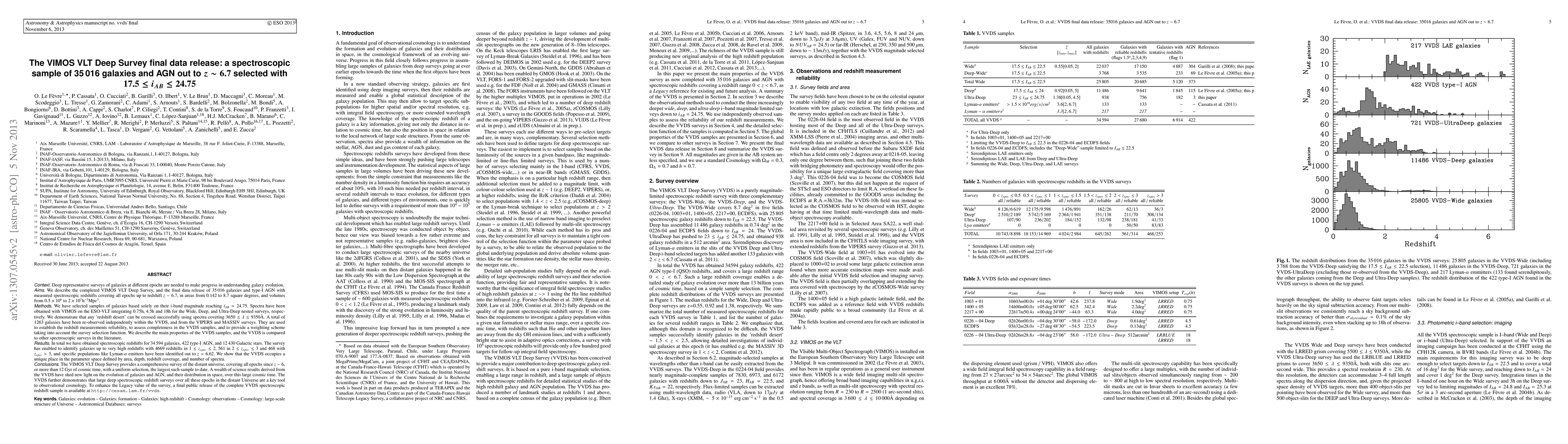 The VIMOS VLT Deep Survey final data release presents 35016 galaxies and AGN with spectroscopic redshifts up to z~6.7, across 0.142 to 8.7 square degrees. The survey, utilizing VIMOS on ESO-VLT, identified galaxies to z=6.62, including 4669 at 1<=z_{spec}<=2, 561 at 2<=z_{spec}<=3, and 468 with z_{spec}>3. It offers a comprehensive, uniform sample for studying galaxy and AGN evolution over 12 Gyr of cosmic time, with data available at http://cesam.lam.fr/vvds.
