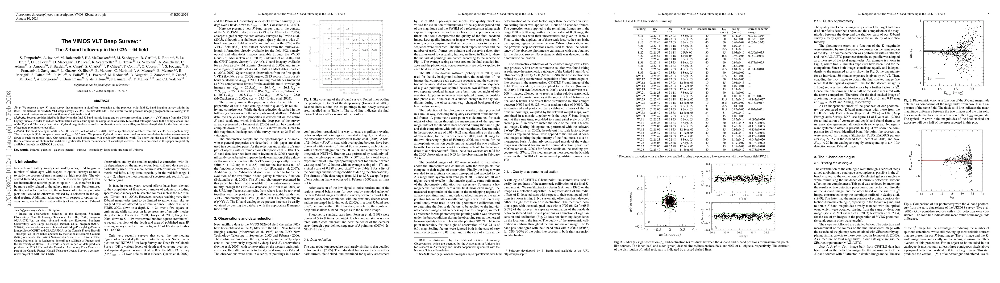 The VIMOS VLT Deep Survey presents an extended Ks-band survey in the 0226-04 field, adding ~458 arcmin^2 to the previous survey, resulting in a total of ~600 arcmin^2. The new catalogue of ~52,000 sources, 90% complete down to K_Vega = 20.5 mag, provides accurate photometric redshifts and supports lower catastrophic error rates.