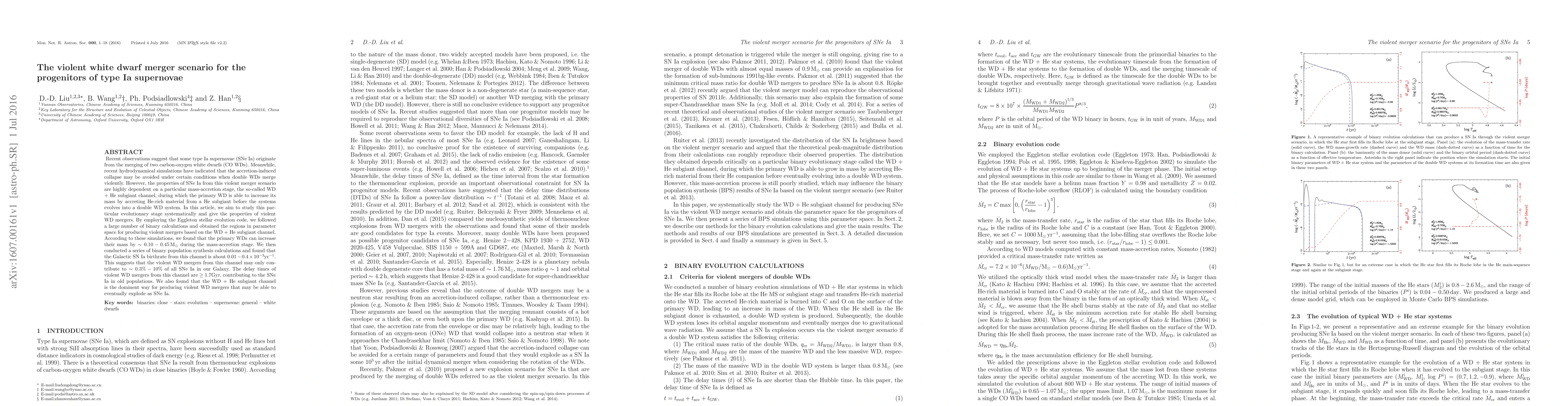 This paper investigates the violent merger of two carbon-oxygen white dwarfs (CO WDs) as a progenitor for some type Ia supernovae (SNe Ia), focusing on the WD + He subgiant channel. Simulations suggest that this channel may contribute 0.3%-10% of SNe Ia in the Galaxy, with a birthrate of about 0.01-0.4*10^-3 yr^-1 and delay times exceeding 1.7 Gyr.