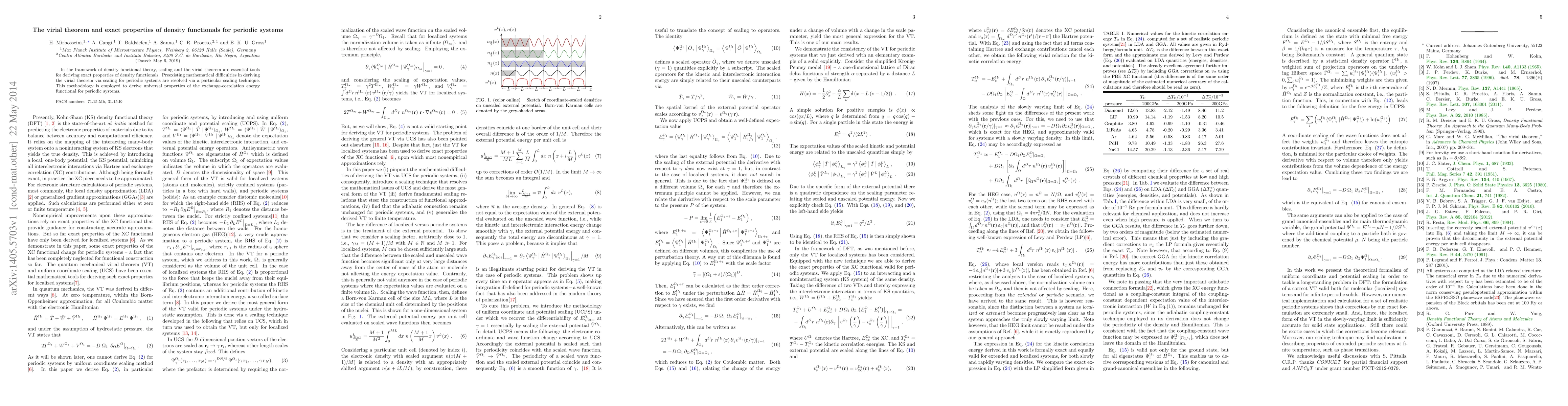 This paper resolves mathematical challenges in applying the virial theorem to periodic systems within density functional theory, using a novel scaling technique, and derives universal properties of the exchange-correlation energy functional.