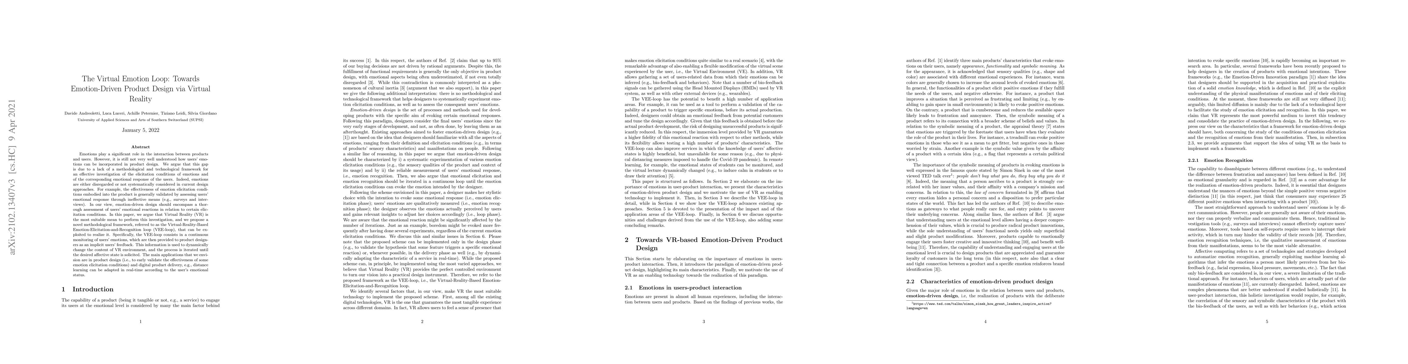 This paper proposes a methodological framework called the Virtual-Reality-Based Emotion-Elicitation-and-Recognition loop (VEE-loop) to effectively investigate and incorporate users' emotional responses in product and service design. The VEE-loop uses VR to continuously monitor and adjust users' emotions, providing feedback to designers to dynamically alter VR environments and achieve desired affective states.