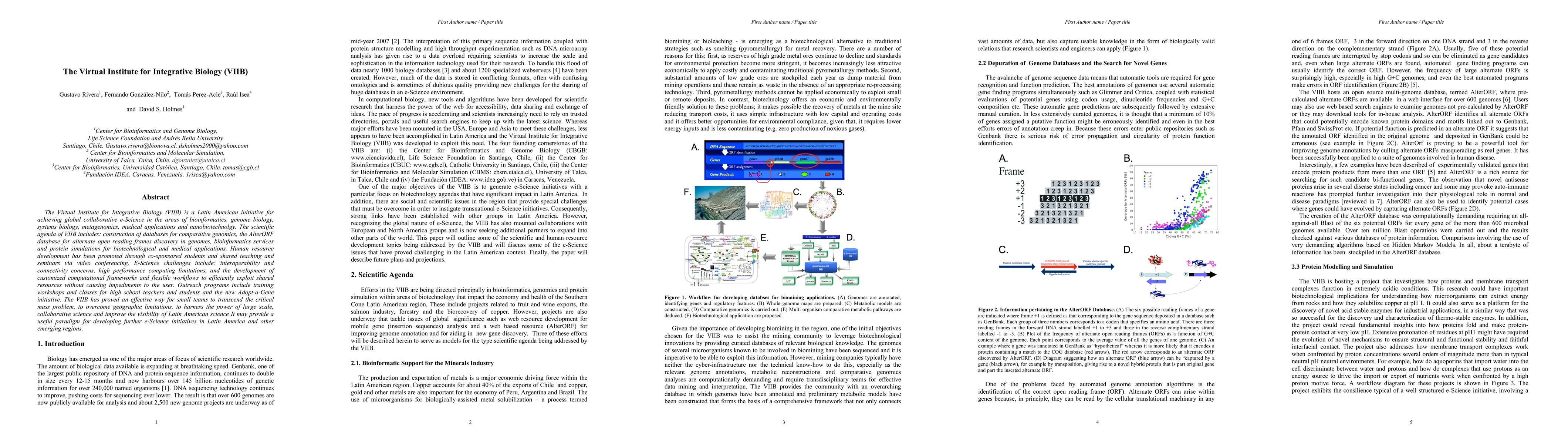The Virtual Institute for Integrative Biology (VIIB) is a successful e-Science initiative in Latin America that enables global collaboration in bioinformatics and related fields through database construction, computational frameworks, and outreach programs. It has proven effective in overcoming geographic limitations and improving the visibility of Latin American science.