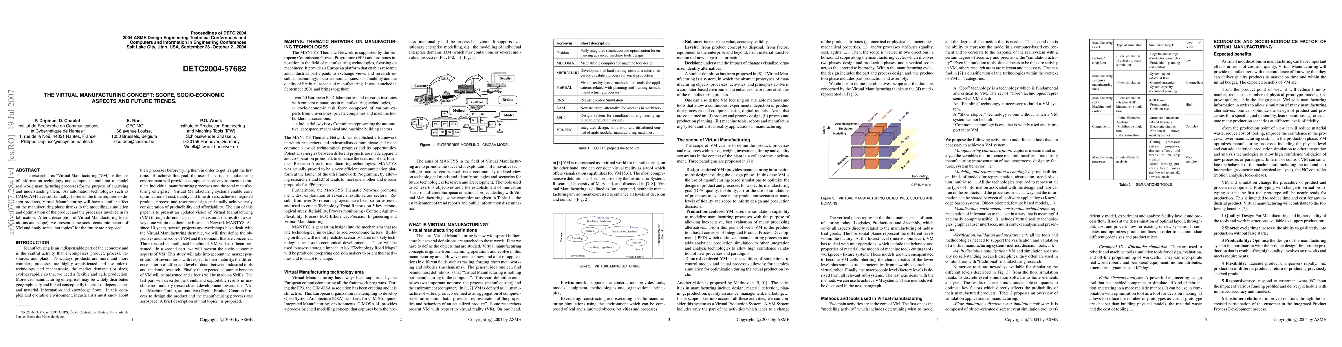 Summary: This paper explores Virtual Manufacturing, leveraging IT and computer simulation to model and optimize manufacturing processes. It discusses socio-economic impacts and highlights future trends, emphasizing the potential for significant time reductions in the manufacturing phase.