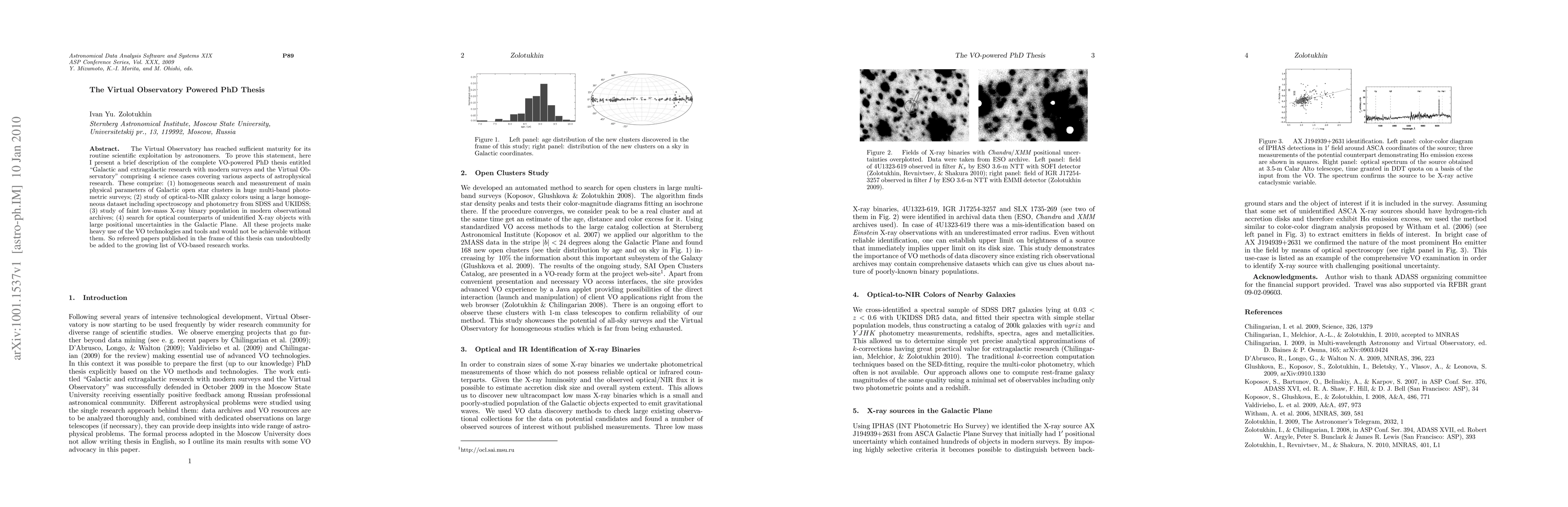 The Virtual Observatory has reached sufficient maturity for its routine scientific exploitation by astronomers. To prove this statement, here I present a brief description of the complete VO-powered PhD thesis entitled "Galactic and extragalactic research with modern surveys and the Virtual Observatory" comprising 4 science cases covering various aspects of astrophysical research. These comprize: (1) homogeneous search and measurement of main physical parameters of Galactic open star clusters in huge multi-band photometric surveys; (2) study of optical-to-NIR galaxy colors using a large homogeneous dataset including spectroscopy and photometry from SDSS and UKIDSS; (3) study of faint low-mass X-ray binary population in modern observational archives; (4) search for optical counterparts of unidentified X-ray objects with large positional uncertainties in the Galactic Plane. All these projects make heavy use of the VO technologies and tools and would not be achievable without them. So refereed papers published in the frame of this thesis can undoubtedly be added to the growing list of VO-based research works.