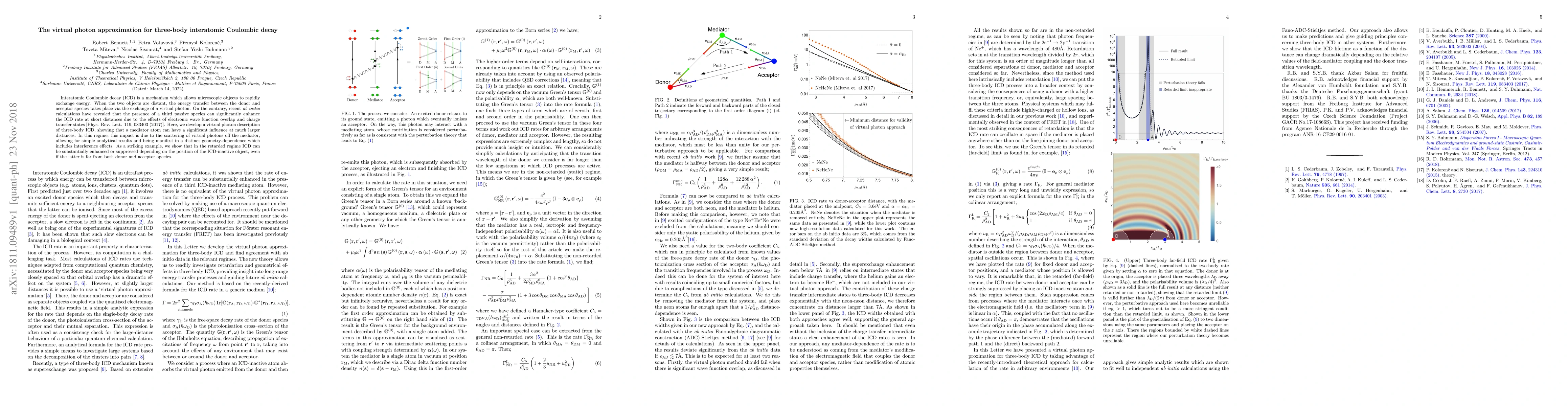 Interatomic Coulombic decay (ICD) is a mechanism which allows microscopic objects to rapidly exchange energy. When the two objects are distant, the energy transfer between the donor and acceptor species takes place via the exchange of a virtual photon. On the contrary, recent ab initio calculations have revealed that the presence of a third passive species can significantly enhance the ICD rate at short distances due to the effects of electronic wave function overlap and charge transfer states [Phys. Rev. Lett. 119, 083403 (2017)]. Here, we develop a virtual photon description of three-body ICD, showing that a mediator atom can have a significant influence at much larger distances. In this regime, this impact is due to the scattering of virtual photons off the mediator, allowing for simple analytical results and being manifest in a distinct geometry-dependence which includes interference effects. As a striking example, we show that in the retarded regime ICD can be substantially enhanced or suppressed depending on the position of the ICD-inactive object, even if the latter is far from both donor and acceptor species.