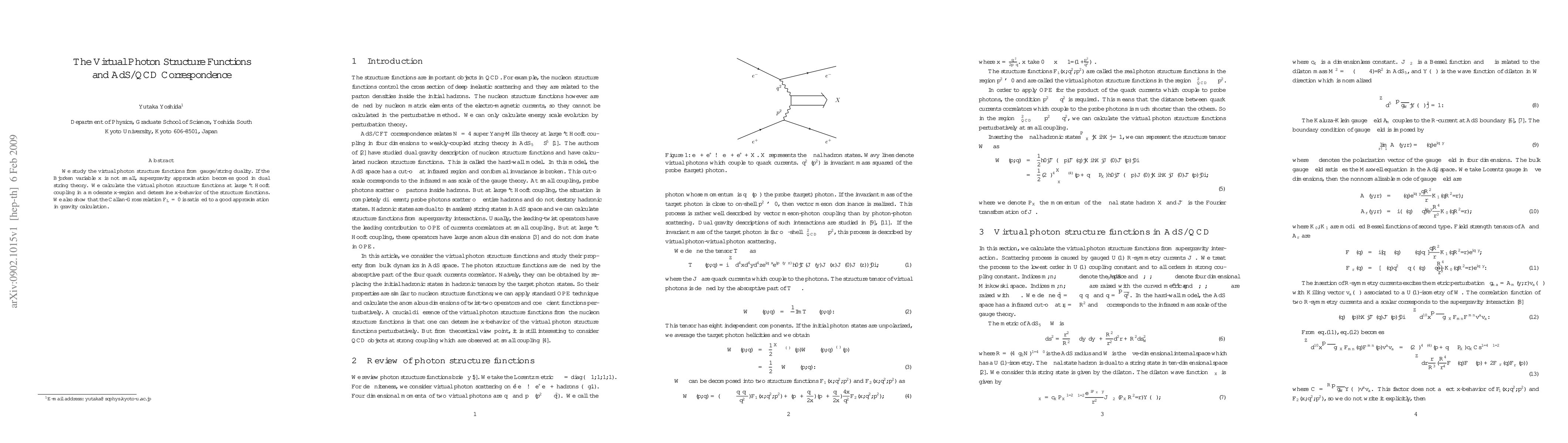 This paper investigates virtual photon structure functions using gauge/string duality, finding that supergravity approximation holds for moderate x-values in the dual string theory. It demonstrates the Callan-Gross relation F_L=0 is satisfied in gravity calculations, supporting the AdS/QCD correspondence.