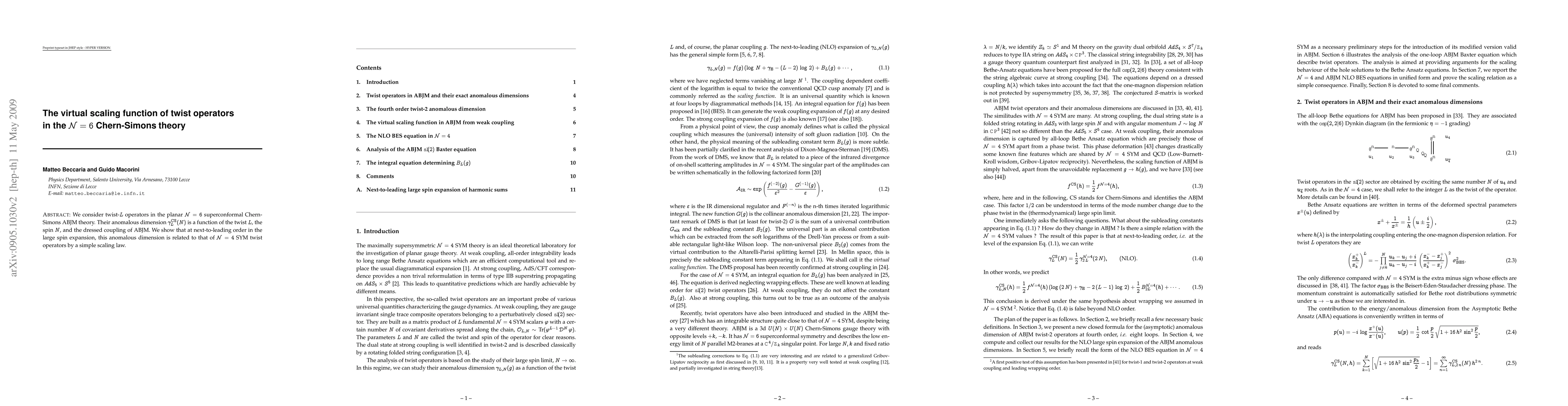 Summary: The paper investigates the anomalous dimension of twist-L operators in N=6 Chern-Simons theory, demonstrating a scaling relationship between these operators and those in N=4 SYM at next-to-leading order in the large spin expansion.