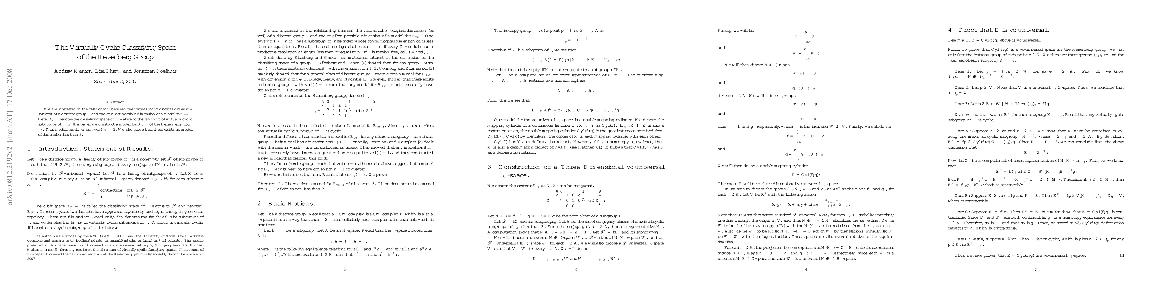 We are interested in the relationship between the virtual cohomological dimension (or vcd) of a discrete group Gamma and the smallest possible dimension of a model for the classifying space of Gamma relative to its family of virtually cyclic subgroups. In this paper we construct a model for the virtually cyclic classifying space of the Heisenberg group. This model has dimension 3, which equals the vcd of the Heisenberg group. We also prove that there exists no model of dimension less than 3.