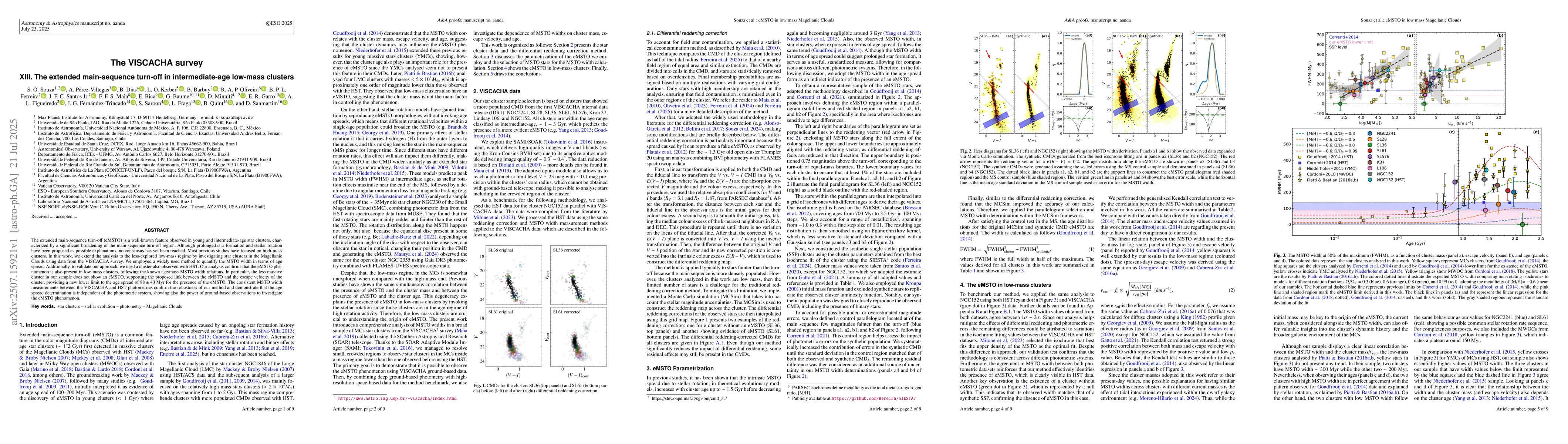 The extended main-sequence turn-off (eMSTO) is a well-known feature observed in young and intermediate-age star clusters, characterized by a significant broadening of the main-sequence turn-off region. Although prolonged star formation and stellar rotation have been proposed as possible explanations, no consensus has yet been reached. Most previous studies have focused on high-mass clusters. In this work, we extend the analysis to the less-explored low-mass regime by investigating star clusters in the Magellanic Clouds using data from the VISCACHA survey. We employed a widely used method to quantify the MSTO width in terms of age spread. Additionally, to validate our approach, we used a cluster also observed with HST. Our analysis confirms that the eMSTO phenomenon is also present in low-mass clusters, following the known age/mass-MSTO width relations. In particular, the less massive cluster in our sample does not show an eMSTO, supporting the proposed link between the eMSTO and the escape velocity of the cluster, providing a new lower limit to the age spread of $88\pm40$ Myr for the presence of the eMSTO. The consistent MSTO width measurements between the VISCACHA and HST photometries confirm the robustness of our method and demonstrate that the age spread determination is independent of the photometric system, showing also the power of ground-based observations to investigate the eMSTO phenomenon.