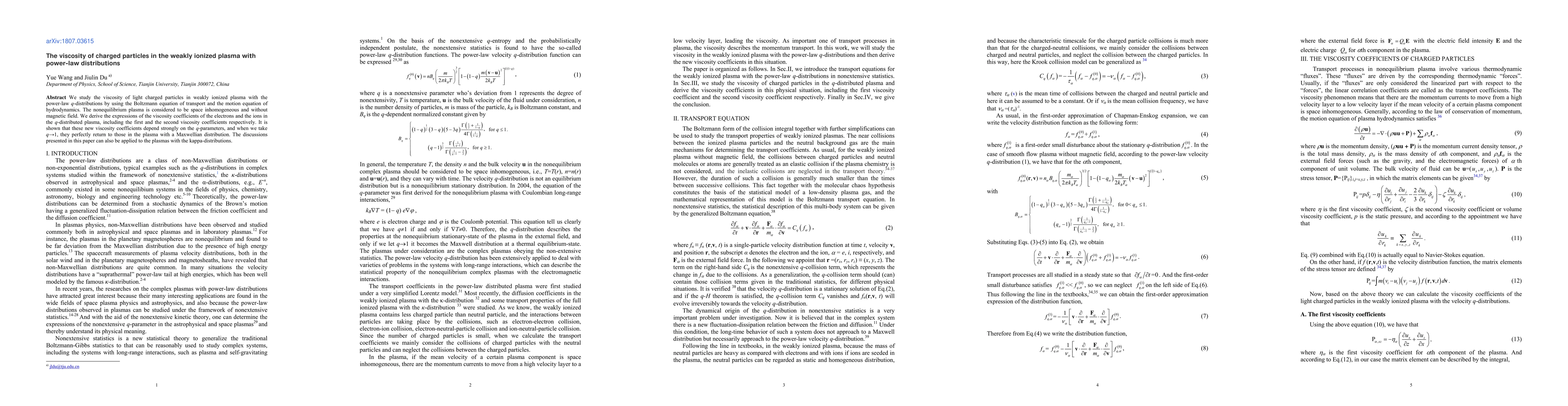 This paper investigates the viscosity of charged particles in weakly ionized plasmas with power-law q-distributions, deriving expressions for electron and ion viscosity coefficients using the Boltzmann equation and hydrodynamics. The study reveals that these coefficients strongly depend on the q-parameters and revert to those in Maxwellian plasmas as q approaches 1.