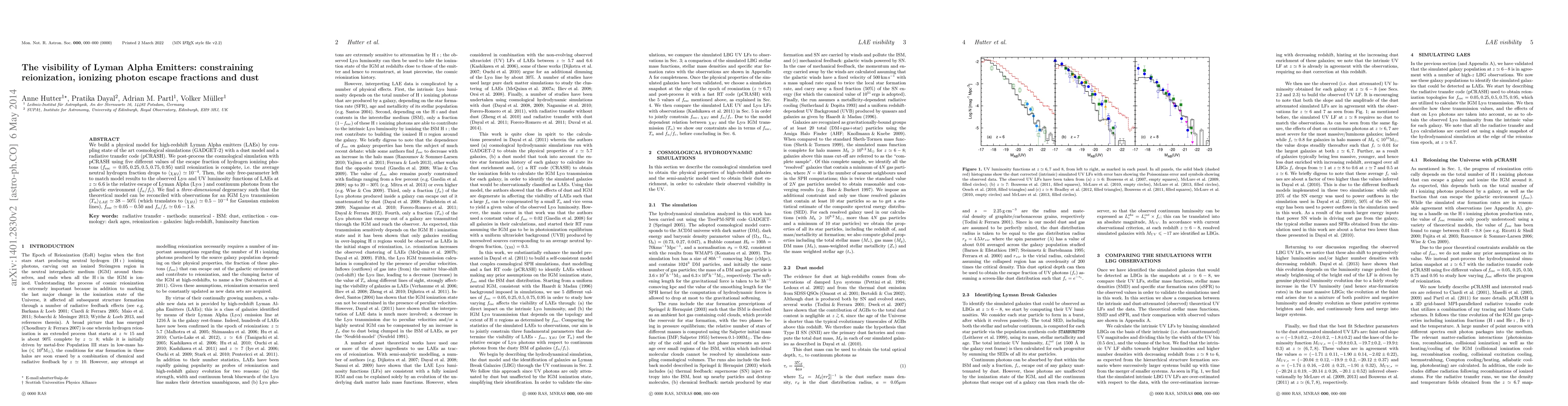 This paper models high-redshift Lyman Alpha emitters (LAEs) using advanced cosmological simulations and radiative transfer, finding that reionization, ionizing photon escape fractions, and dust influence LAE visibility. The model reconciles with observations for specific ranges in intergalactic medium transmission, escape fractions, and relative Lya/continuum photon escape ratios.