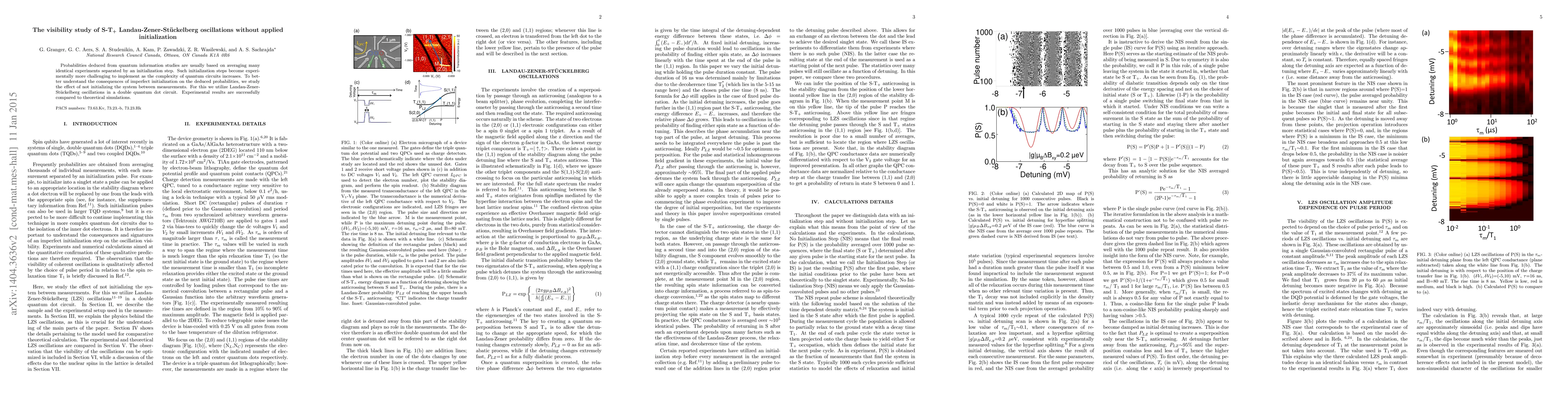 The study investigates the effect of omitting initialization on Landau-Zener-Stückelberg (LZS) oscillations in a double quantum dot circuit, comparing experimental results with theoretical simulations.