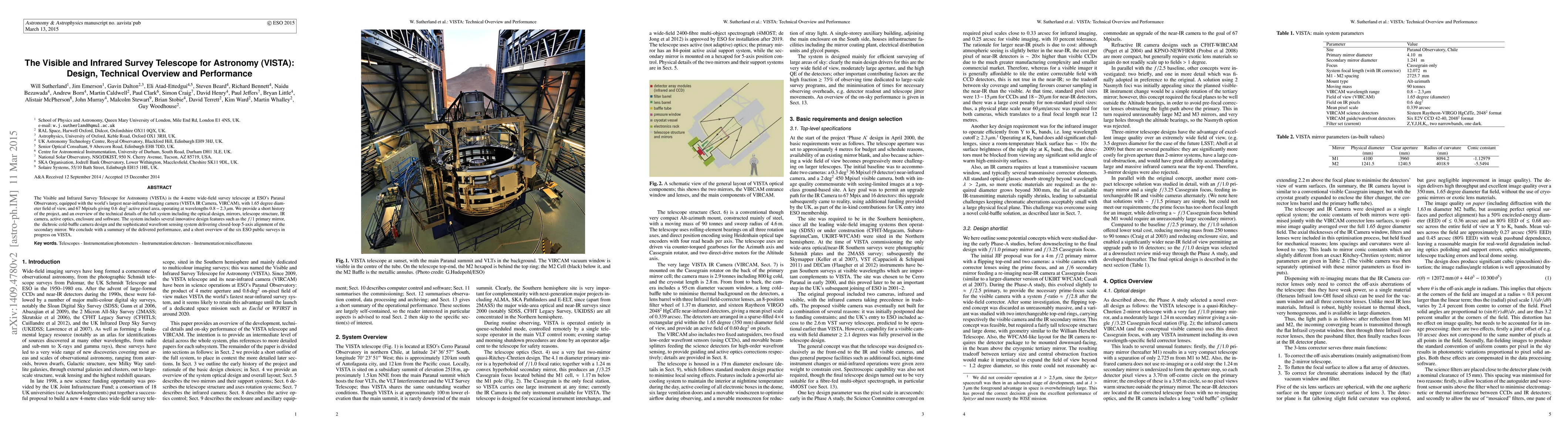 The VISTA telescope, a 4-metre wide-field survey instrument at ESO's Paranal Observatory, features the world's largest near-infrared imaging camera, delivering exceptional performance across 0.8 - 2.3 microns. The system incorporates innovative design elements and delivers impressive survey capabilities.