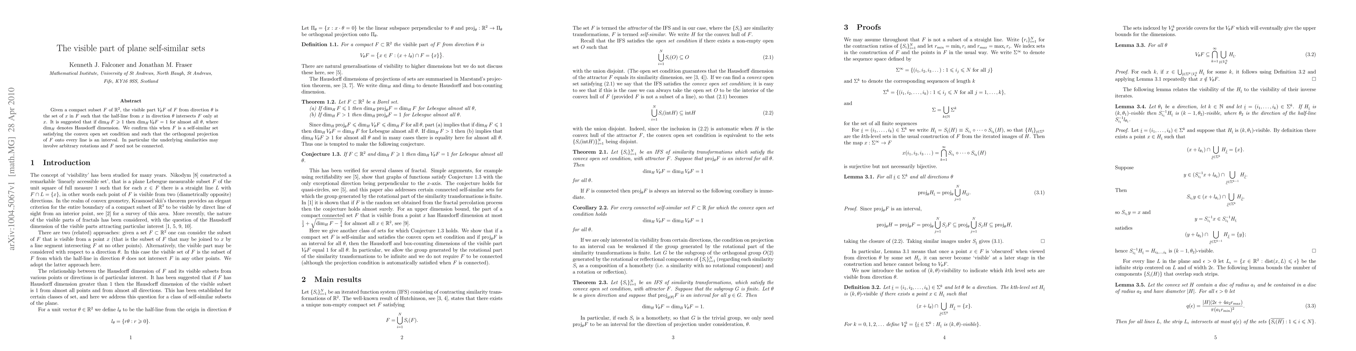 Given a compact subset $F$ of $\mathbb{R}^2$, the visible part $V_\theta F$ of $F$ from direction $\theta$ is the set of $x$ in $F$ such that the half-line from $x$ in direction $\theta$ intersects $F$ only at $x$. It is suggested that if $\dim_H F \geq 1$ then $\dim_H V_\theta F = 1$ for almost all $\theta$, where $\dim_H$ denotes Hausdorff dimension. We confirm this when $F$ is a self-similar set satisfying the convex open set condition and such that the orthogonal projection of $F$ onto every line is an interval. In particular the underlying similarities may involve arbitrary rotations and $F$ need not be connected.