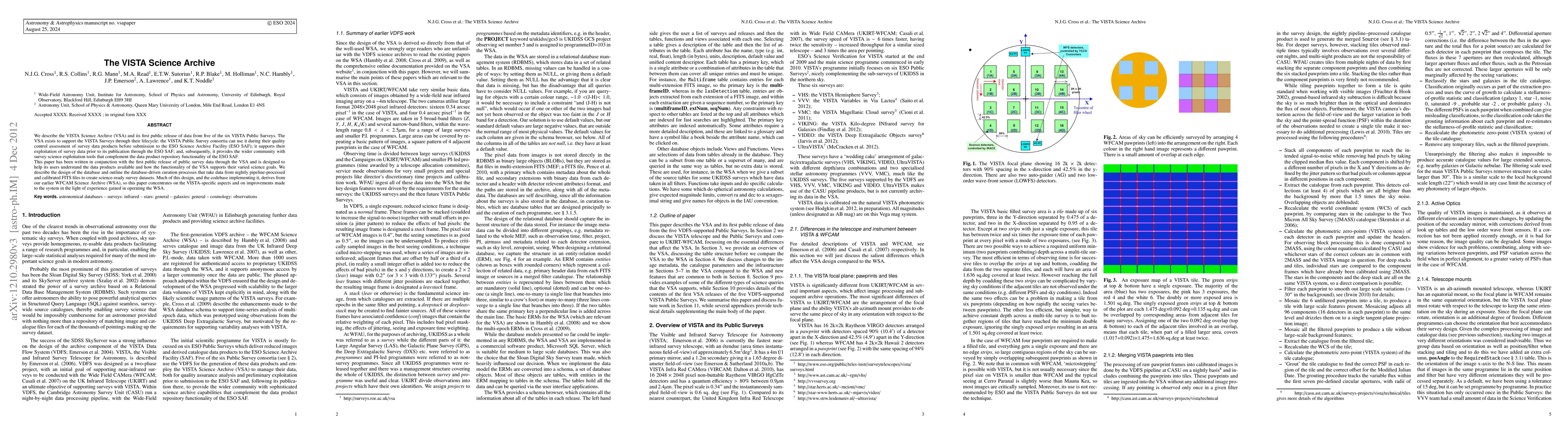 The paper describes the design and implementation of the VISTA Science Archive (VSA), detailing its database structure, curation processes, and improvements over the WFCAM Science Archive (WSA).