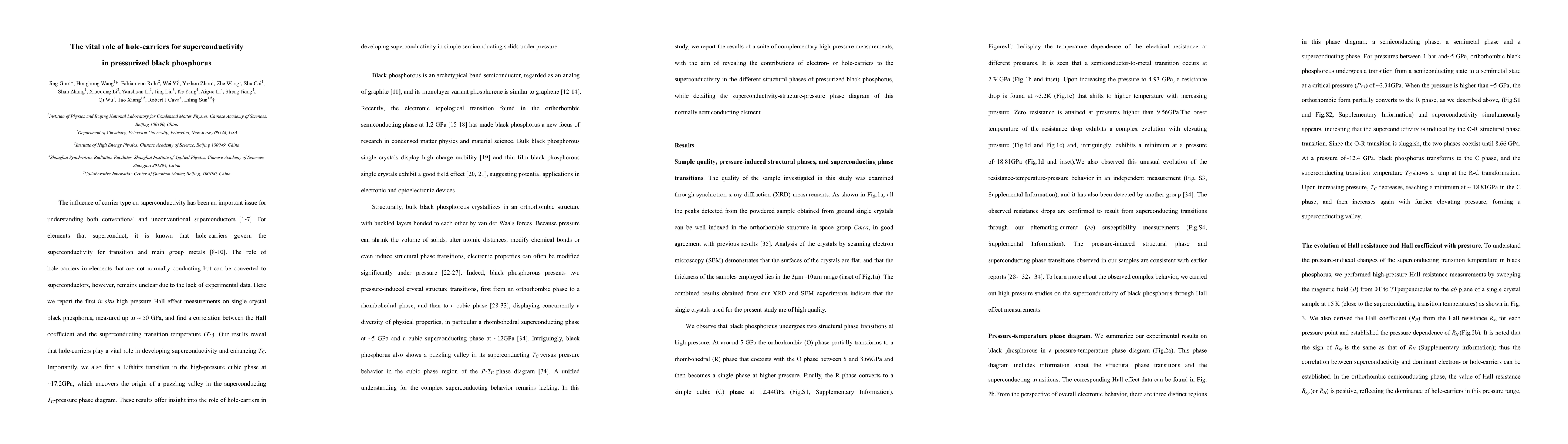This work is novel as it is the first to report the vital role of hole-carriers in superconductivity in pressurized black phosphorus, and to identify a Lifshitz transition in this material, offering new insights into superconductivity in non-metallic elements.