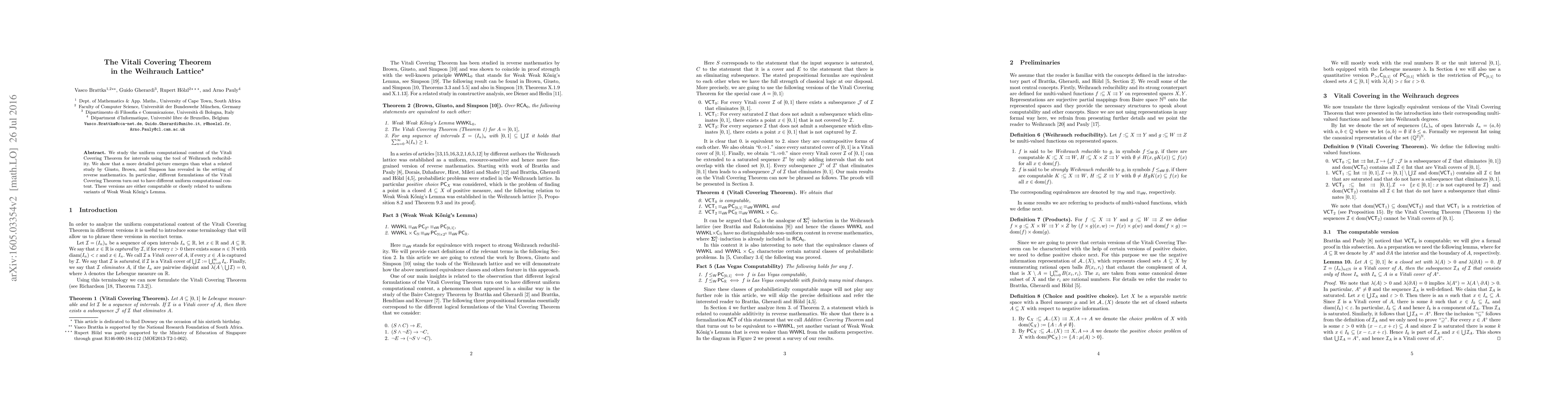 The paper studies the uniform computational content of the Vitali Covering Theorem using Weihrauch reducibility, finding different formulations have varying computational complexity and connections to other mathematical lemmas.
