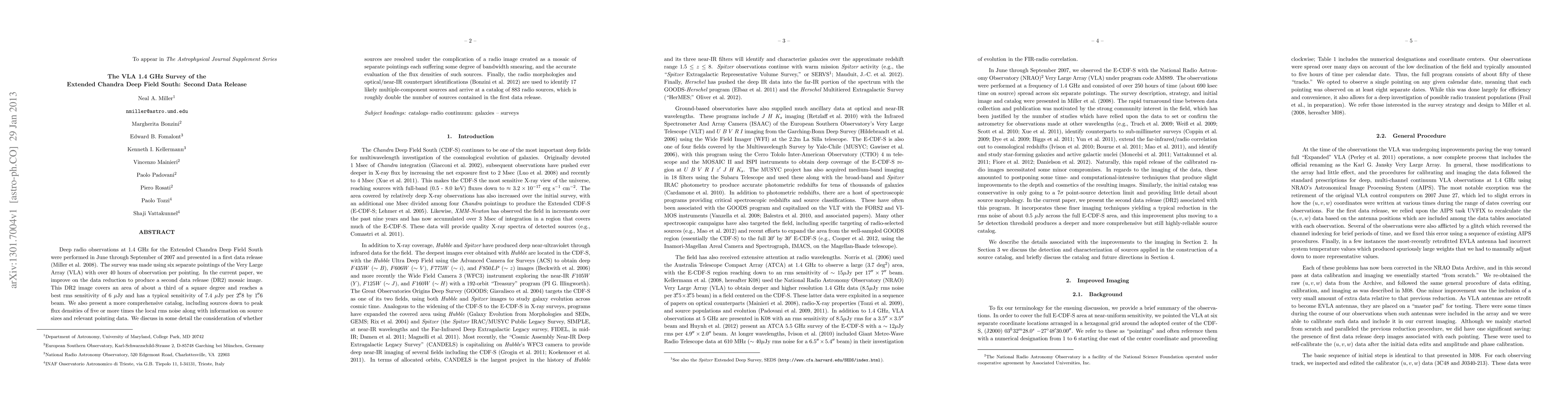 The research presents a second data release (DR2) of deep radio observations at 1.4GHz for the Extended Chandra Deep Field South, conducted with the Very Large Array (VLA) in six separate pointings, totaling over 40 hours of observation per pointing.