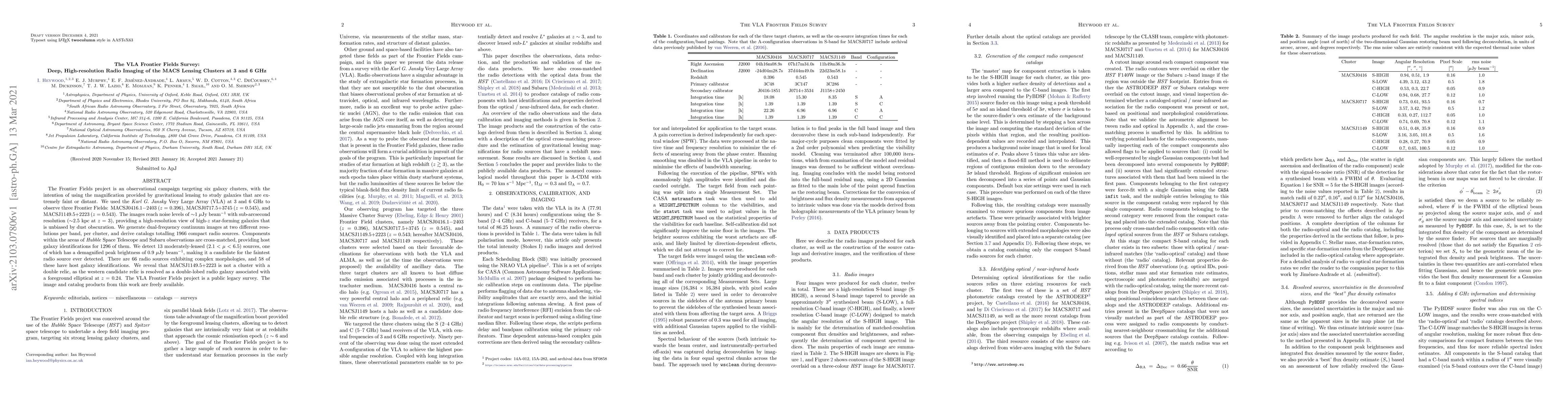 The VLA Frontier Fields Survey provides high-resolution radio imaging at 3 and 6 GHz for three MACS clusters, revealing 1966 compact radio sources and identifying host galaxies for 1296 of them, with one candidate for the faintest radio source ever detected. The survey also resolves a previously proposed double relic in MACSJ1149.5+2223 as a foreground radio galaxy.