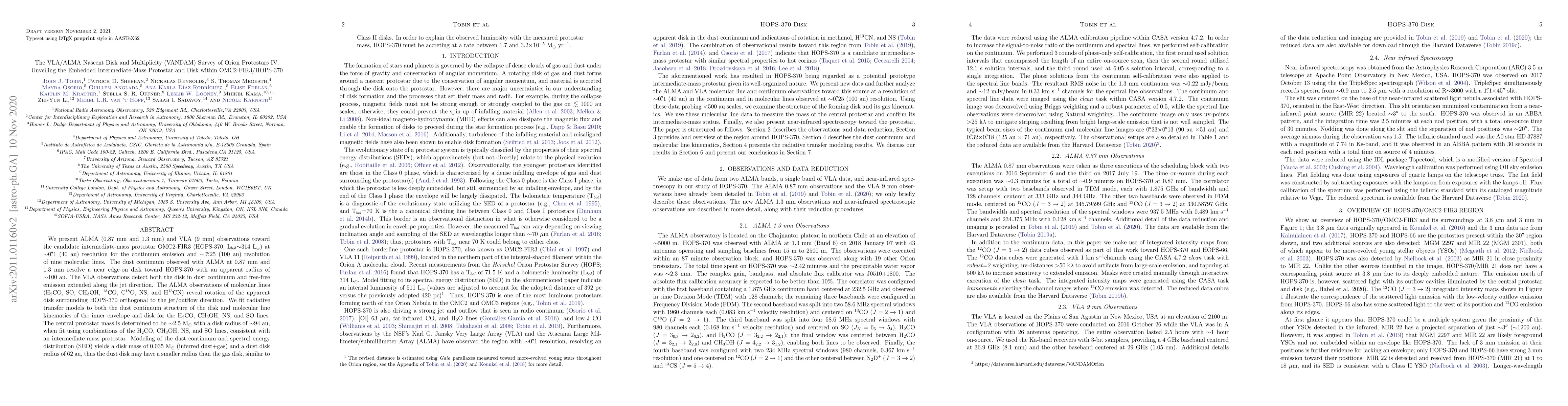 The research utilized ALMA and VLA observations at high resolution to study the continuum and molecular lines of the candidate intermediate-mass protostar OMC2-FIR3/HOPS-370, aiming to unveil its disk and kinematics.
