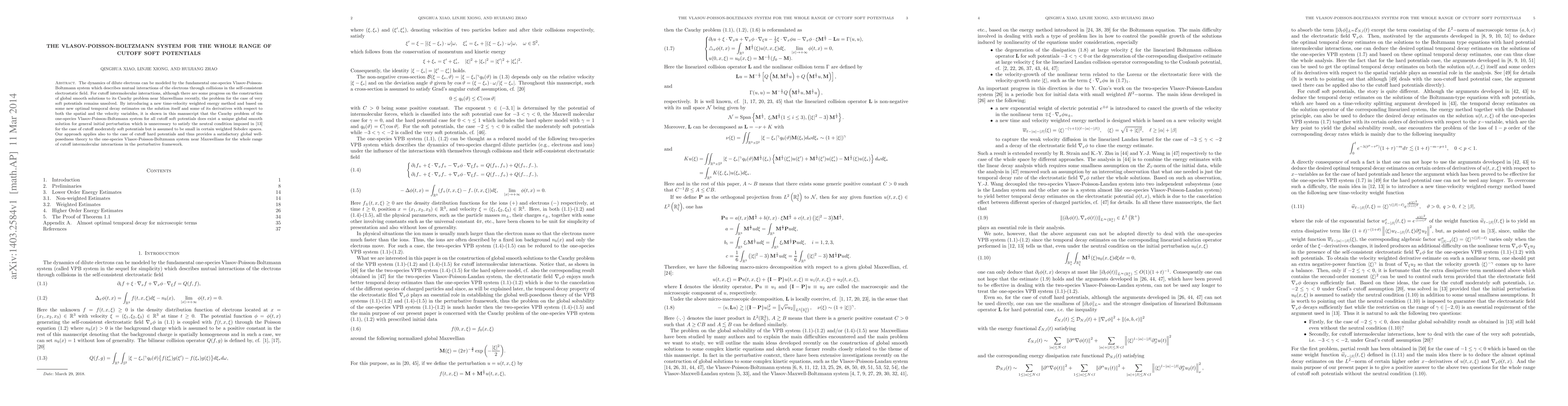 The dynamics of dilute electrons can be modeled by the fundamental one-species Vlasov-Poisson-Boltzmann system which describes mutual interactions of the electrons through collisions in the self-consistent electrostatic field. For cutoff intermolecular interactions, although there are some progress on the construction of global smooth solutions to its Cauchy problem near Maxwellians recently, the problem for the case of very soft potentials remains unsolved. By introducing a new time-velocity weighted energy method and based on some new optimal temporal decay estimates on the solution itself and some of its derivatives with respect to both the spatial and the velocity variables, it is shown in this manuscript that the Cauchy problem of the one-species Vlasov-Poisson-Boltzmann system for all cutoff soft potentials does exist a unique global smooth solution for general initial perturbation which is unnecessary to satisfy the neutral condition imposed in [13] for the case of cutoff moderately soft potentials but is assumed to be small in certain weighted Sobolev spaces. Our approach applies also to the case of cutoff hard potentials and thus provides a satisfactory global well-posedness theory to the one-species Vlasov-Poisson-Boltzmann system near Maxwellians for the whole range of cutoff intermolecular interactions in the perturbative framework.