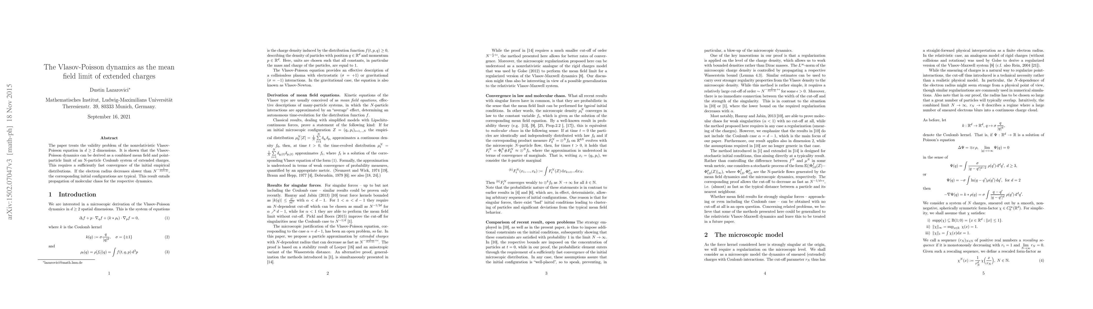 The paper demonstrates that the Vlasov-Poisson equation emerges as the mean field limit of an N-particle Coulomb system with extended charges, provided the initial empirical distributions converge sufficiently fast. This convergence condition ensures the propagation of molecular chaos in the dynamics.