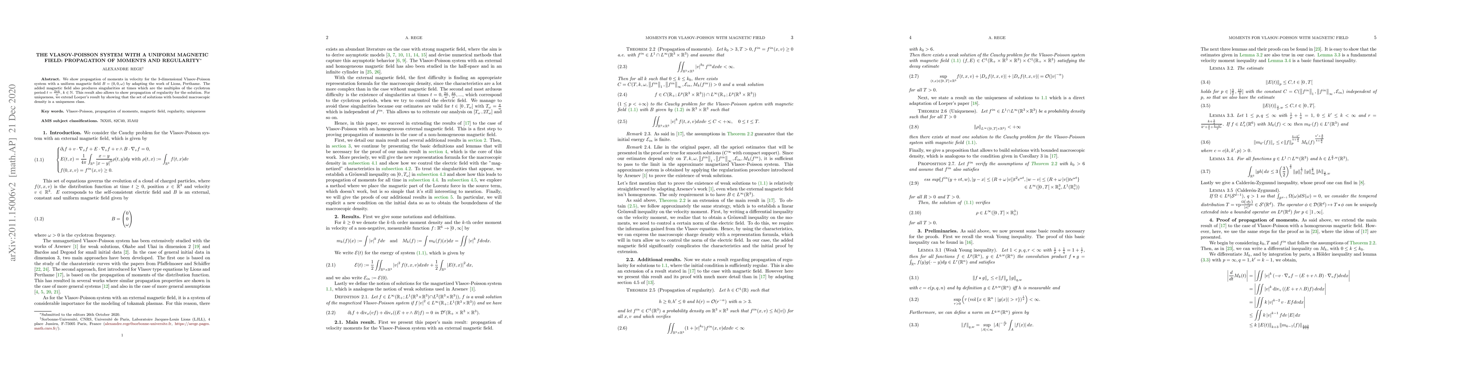 This paper demonstrates the propagation of velocity moments in the 3D Vlasov-Poisson system with a uniform magnetic field, revealing singularities at cyclotron period multiples. It also establishes propagation of regularity and extends uniqueness results for solutions with bounded density.