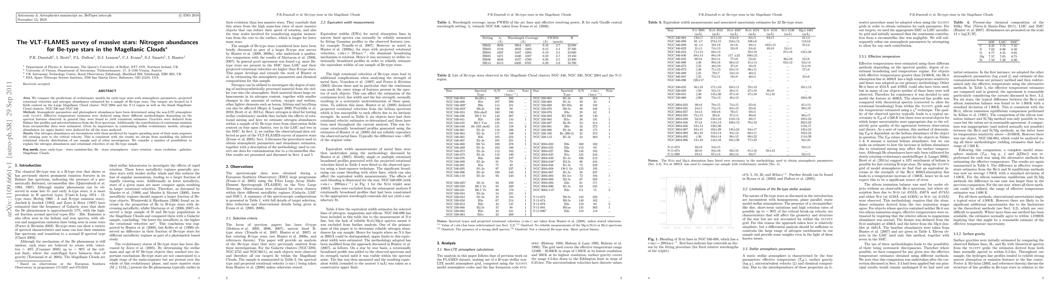 Researchers studied Be-type stars in the Magellanic Clouds to compare model predictions with observed nitrogen abundances and rotational velocities, finding inconsistencies with evolutionary models.