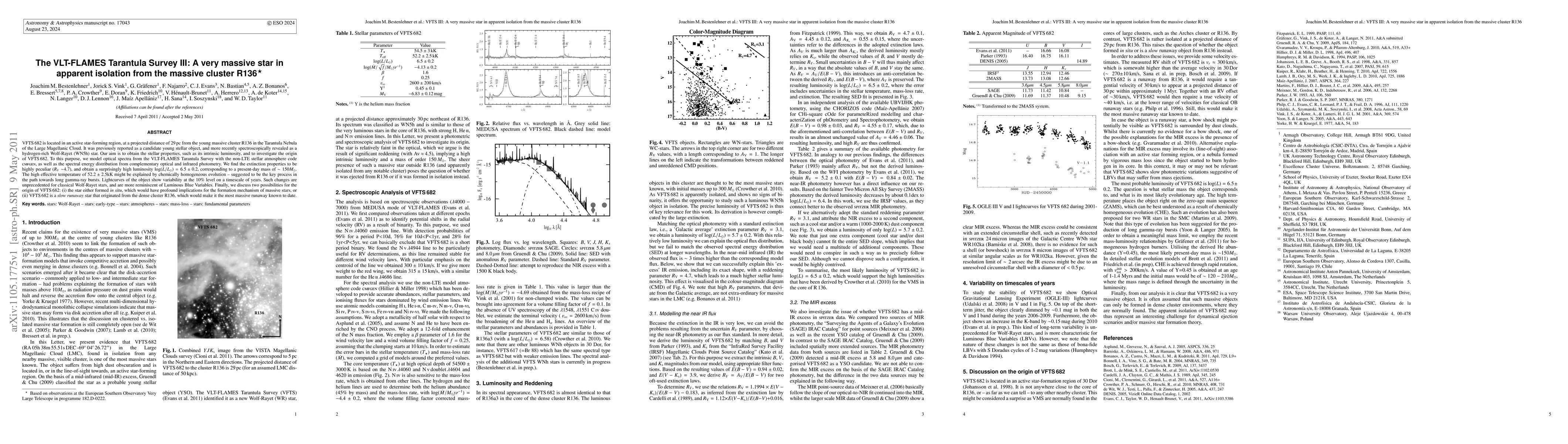 The VLT-FLAMES Tarantula Survey reveals VFTS 682, a very massive WN5h Wolf-Rayet star with an extraordinary luminosity of log(L/Lsun) = 6.5 \pm 0.2, corresponding to a mass of ~150Msun, located 29 pc from the massive cluster R136. Its origin remains uncertain, potentially indicating either in situ formation or as a slow runaway from R136.