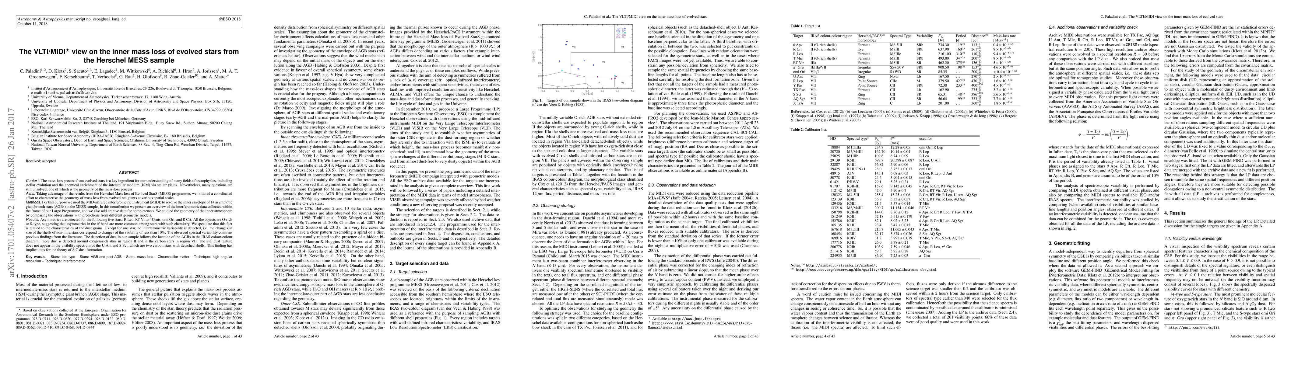 The mass-loss process from evolved stars is a key ingredient for our understanding of many fields of astrophysics, including stellar evolution and the chemical enrichment of the interstellar medium via stellar yields. One the main unsolved questions is the geometry of the mass-loss process. Taking advantage of the results from the Herschel Mass loss of Evolved StarS (MESS) programme, we initiated a coordinated effort to characterise the geometry of mass loss from evolved red giants at various spatial scales. For this purpose we used the MID-infrared interferometric Instrument (MIDI) to resolve the inner envelope of 14 asymptotic giant branch stars (AGBs) in the MESS sample. In this contribution we present an overview of the interferometric data collected within the frame of our Large Programme, and we also add archive data for completeness. We studied the geometry of the inner atmosphere by comparing the observations with predictions from different geometric models. Asymmetries are detected for five O-rich and S-type, suggesting that asymmetries in the N band are more common among stars with such chemistry. We speculate that this fact is related to the characteristics of the dust grains. Except for one star, no interferometric variability is detected, i.e. the changes in size of the shells of non-mira stars correspond to changes of the visibility of less than 10%. The observed spectral variability confirms previous findings from the literature. The detection of dust in our sample follows the location of the AGBs in the IRAS colour-colour diagram: more dust is detected around oxygen-rich stars in region II and in the carbon stars in region VII. The SiC dust feature does not appear in the visibility spectrum of UAnt and SSct, which are two carbon stars with detached shells. This finding has implications for the theory of SiC dust formation.