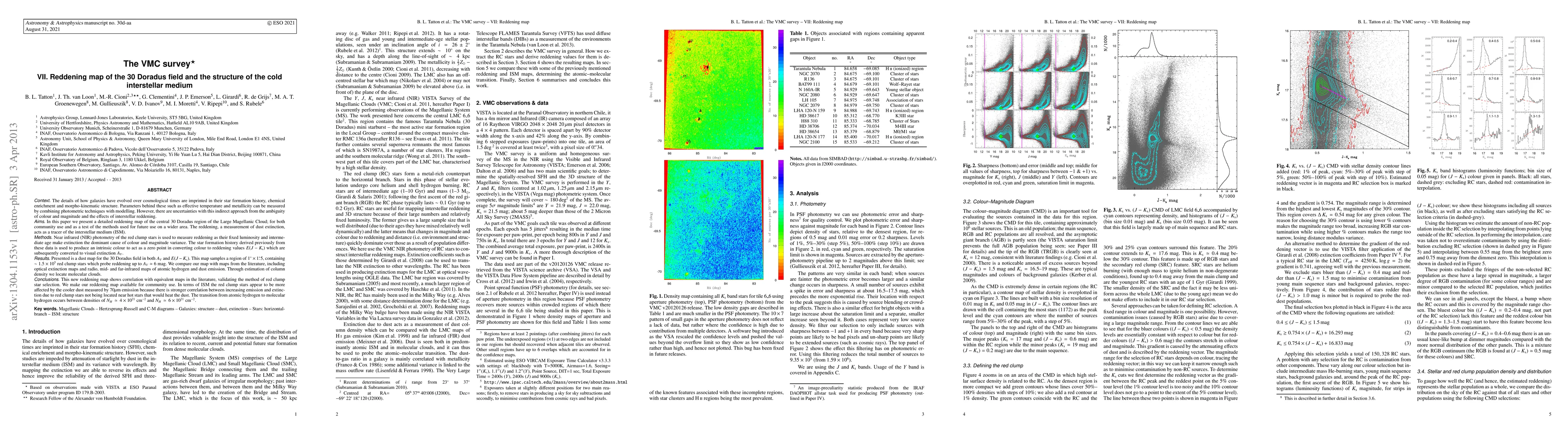 Context: The details of how galaxies have evolved are imprinted in their star formation history, chemical enrichment and morpho-kinematic structure. Parameters behind these can be measured by combining photometric techniques with modelling. However, there are uncertainties from the ambiguity of colour and magnitude and the effects of interstellar reddening. Aims: In this paper we present a detailed reddening map of the central 30 Doradus region of the Large Magellanic Cloud; for community use and to test the methods used. The reddening, a measurement of dust extinction, acts as a tracer of the interstellar medium (ISM). Methods: Near infrared photometry of red clump stars are used to measure reddening as extinction is the main cause of their colour and magnitude variance. The star formation history is used to convert colour to reddening values which are subsequently converted to visual extinction. Results: Presented is a dust map for the 30 Doradus field. This map samples a region of 1x1.5 deg, containing ~1.5x10^5 red clump stars which probe reddening up to AV=6 mag. We compare our map with maps from the literature, including optical extinction maps and radio, mid- and far-infrared maps of atomic hydrogen and dust emission. Through estimation of column density we locate molecular clouds. Conclusions: This new reddening map shows correlation with equivalent maps in the literature, validating the method of red clump star selection. We make our reddening map available for community use. In terms of ISM the red clump stars appear to be more affected by the cooler dust measured by 70 micron emission because there is stronger correlation between increasing emission and extinction due to red clump stars not being located near hot stars that would heat the dust. The transition from atomic hydrogen to molecular hydrogen occurs between densities of NH=4x10^21 to 6x10^21 cm^-2.