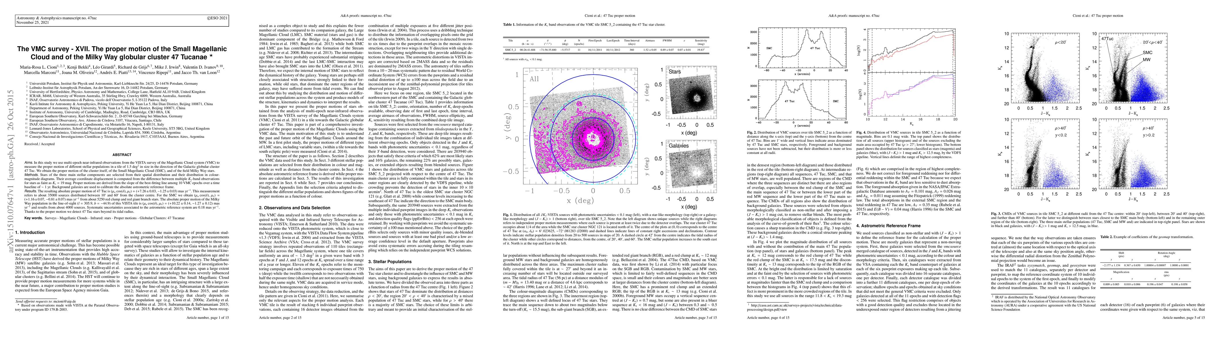 This study measures the proper motion of the Small Magellanic Cloud (SMC), the Milky Way globular cluster 47 Tucanae, and field Milky Way stars using multi-epoch near-infrared observations from the VISTA survey. The derived proper motions reveal significant differences among the stellar populations, aiding in the detection of 47 Tuc stars beyond its tidal radius.