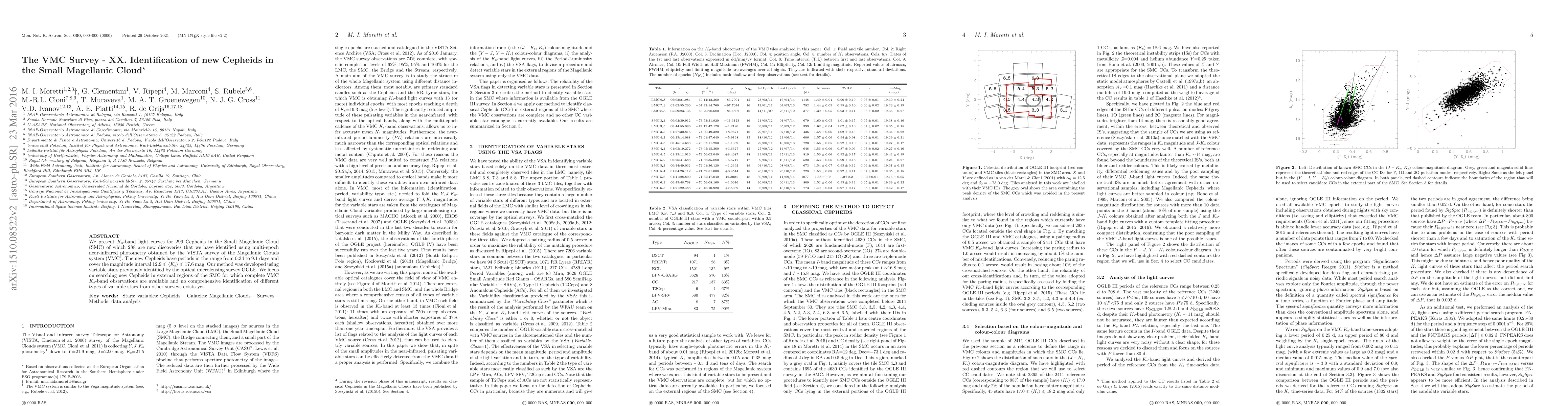 The VMC Survey identified 288 new Cepheids in the Small Magellanic Cloud using multi-epoch near-infrared photometry from the VISTA survey, expanding the known population of these variable stars in the SMC. The new Cepheids have periods ranging from 0.34 to 9.1 days and cover a magnitude range of 12.9 to 17.6 mag.