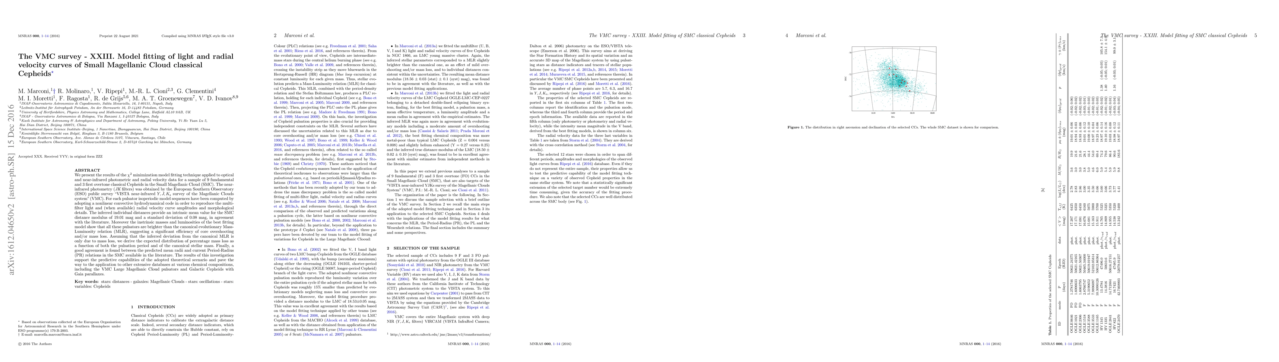 This study applies chi2 minimization model fitting to optical and near-infrared data of 12 classical Cepheids in the Small Magellanic Cloud, yielding a mean SMC distance modulus of 19.01 mag. The models suggest significant core overshooting and/or mass loss, deviating from the canonical Mass-Luminosity relation.