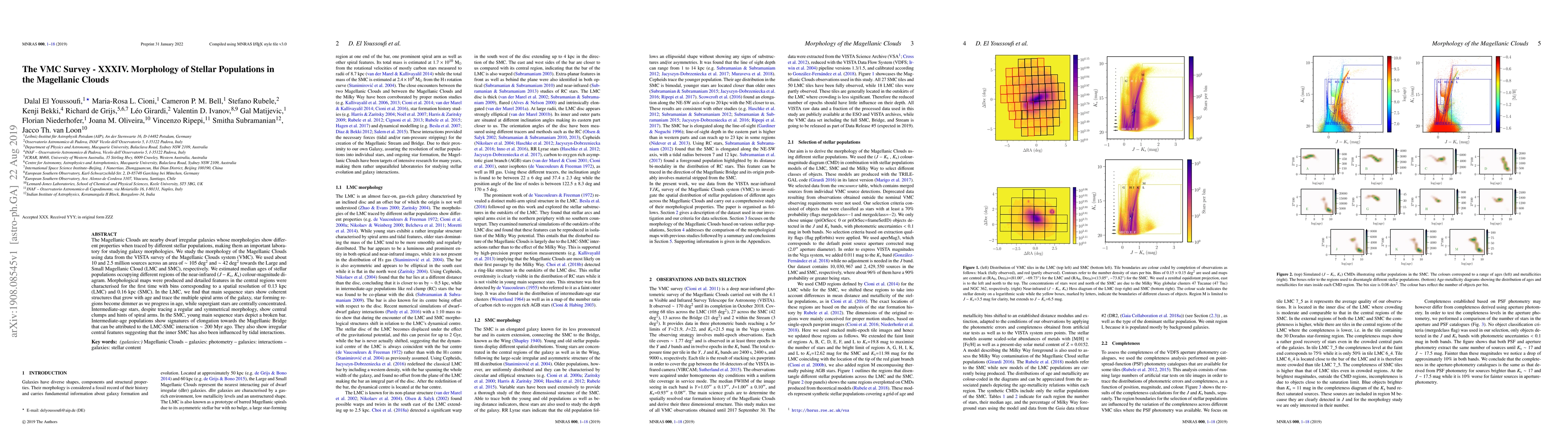 This study uses VMC survey data to analyze the morphology of stellar populations in the Magellanic Clouds, revealing age-dependent structures in the LMC and SMC, including coherent spiral arms in the LMC and bar-like features in the SMC, influenced by past interactions with the LMC.