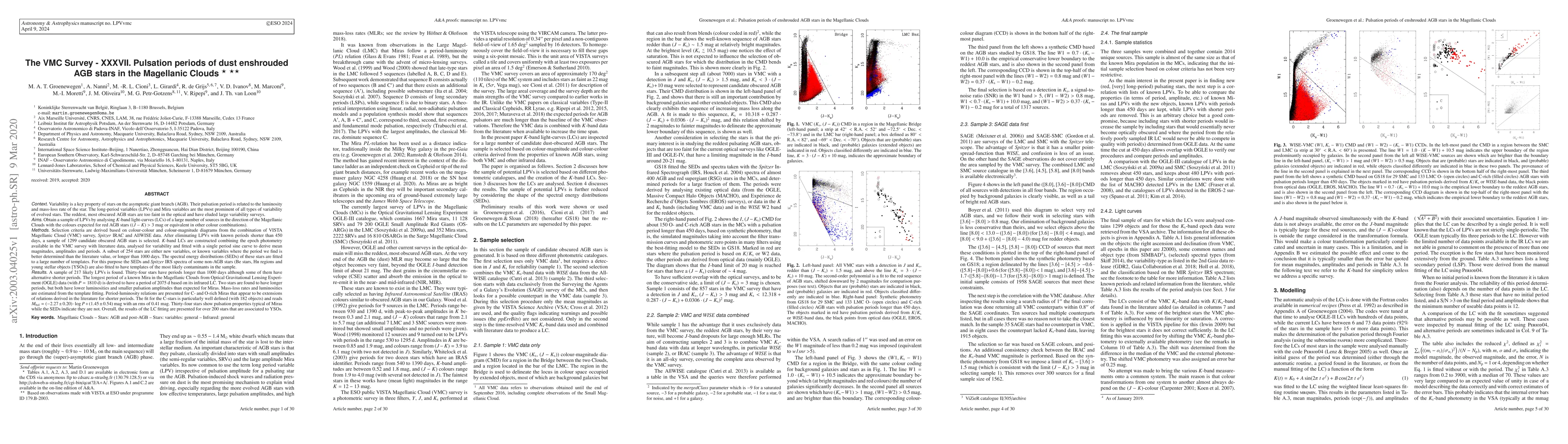 This study investigates the pulsation periods of dust-enshrouded asymptotic giant branch (AGB) stars in the Magellanic Clouds using the VMC survey, Spitzer, and AllWISE data. The research identifies 1299 candidate obscured AGB stars, of which 254 have new or better-determined pulsation periods, with 34 stars having periods longer than 1000 days. Period-luminosity relations for C- and O-rich Miras are established, particularly for C-stars with a well-defined fit.