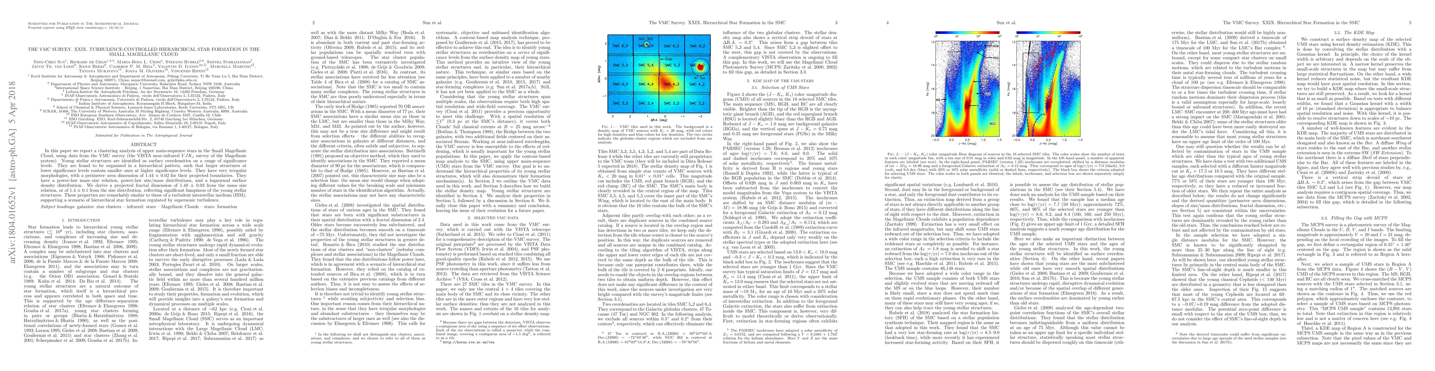 This paper analyzes upper main-sequence stars in the Small Magellanic Cloud, revealing a hierarchical pattern of young stellar structures with fractal dimensions indicative of turbulence-controlled star formation, suggesting that supersonic turbulence regulates this hierarchical formation process.