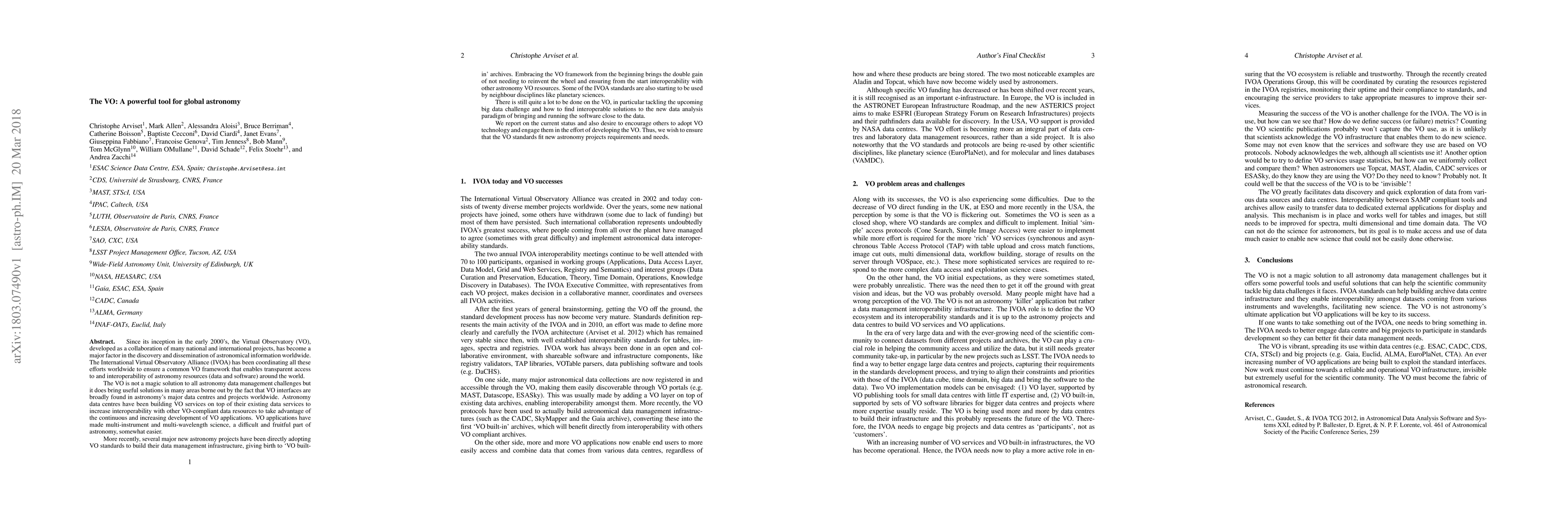 The Virtual Observatory (VO) has become a powerful tool for global astronomy, enabling transparent access to and interoperability of astronomical resources worldwide. By adopting VO standards, astronomers can take advantage of new data management solutions and tackle challenges such as big data and analysis paradigms.