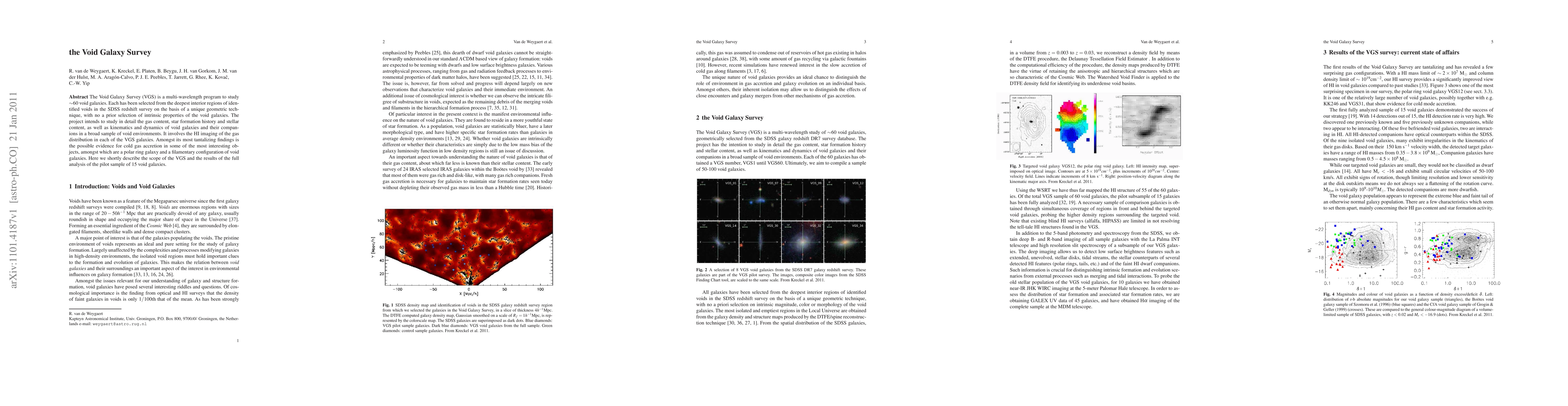The Void Galaxy Survey (VGS) investigates approximately 60 galaxies located in the deepest voids, using a unique geometric selection method. The study focuses on gas content, star formation, and dynamics of these galaxies, revealing potential cold gas accretion in some, including a polar ring galaxy and a filamentary configuration.