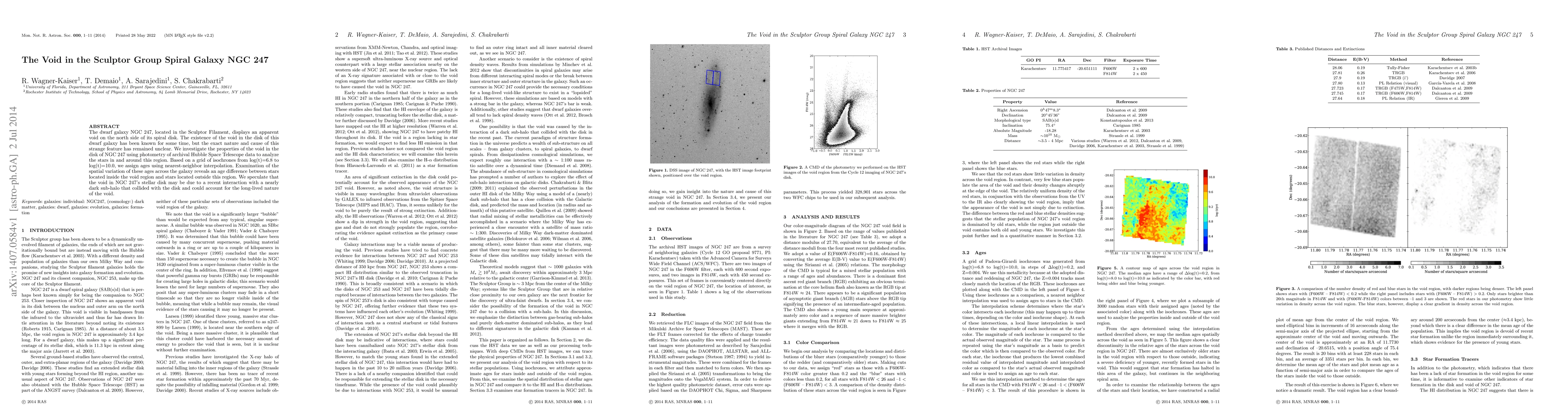 Researchers investigated a void in the spiral galaxy NGC 247, finding age differences between stars inside and outside the void, suggesting it may have formed from a recent collision with a nearly dark sub-halo.