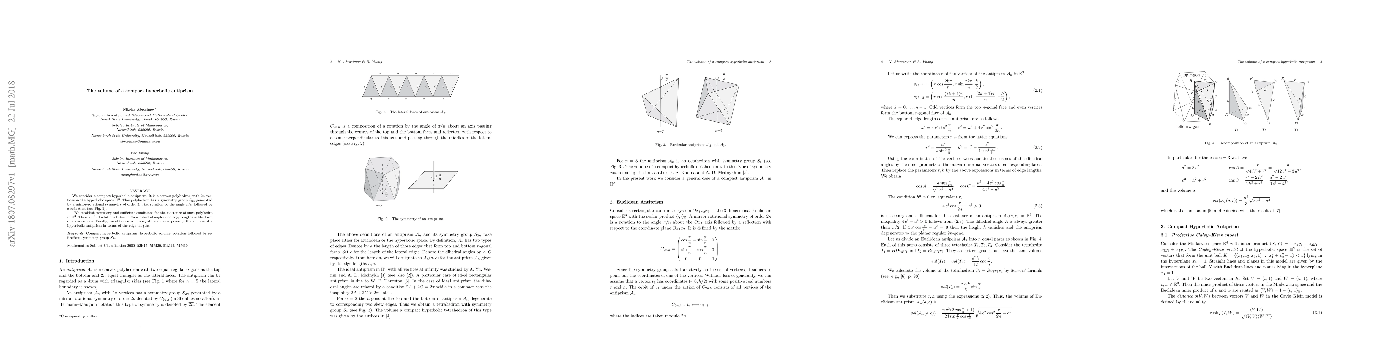 This paper establishes conditions for the existence of compact hyperbolic antiprisms in $\mathbb{H}^3$ and derives exact integral formulas for their volume in terms of edge lengths, alongside a cosine rule relating dihedral angles and edge lengths.