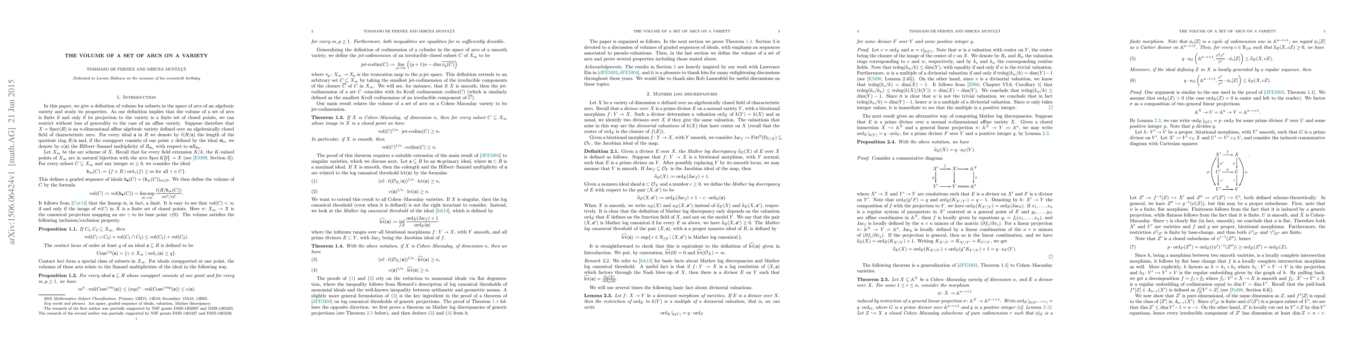 This paper defines a volume for subsets in the space of arcs on an algebraic variety and explores its properties. The main result connects the volume of arcs on a Cohen-Macaulay variety to its jet-codimension, extending the concept of codimension in smooth varieties.