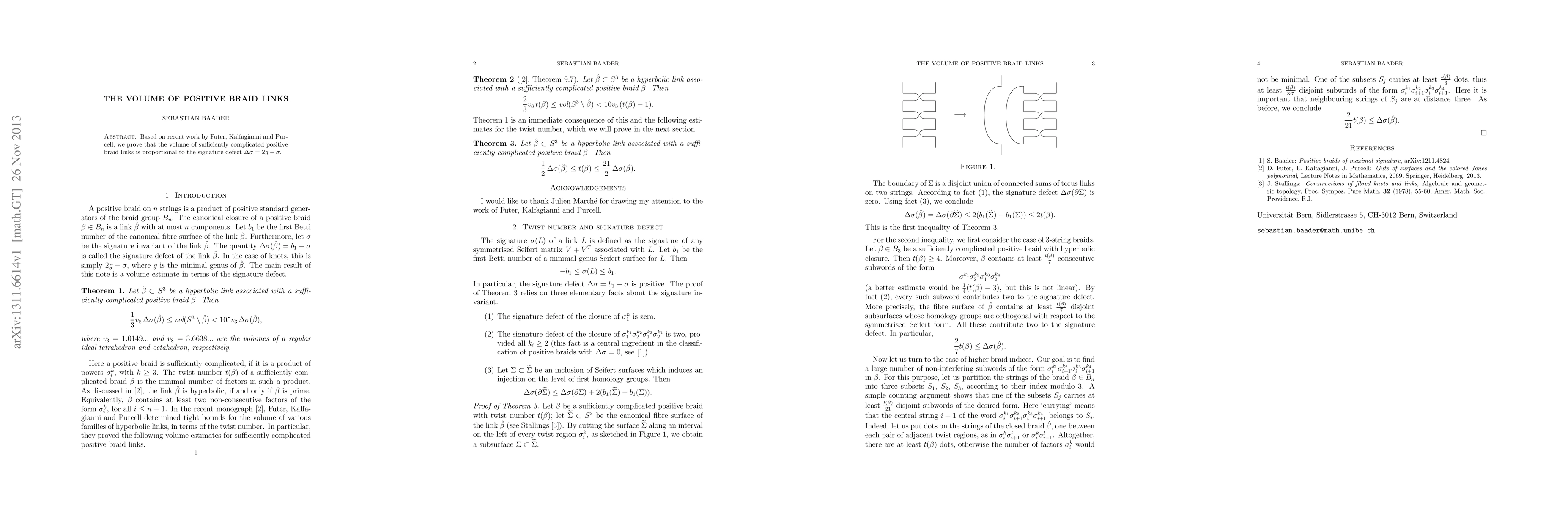 Researchers prove that the volume of positive braid links is proportional to a signature defect, which relates to knot theory and topology, providing insight into the properties of complex knots.