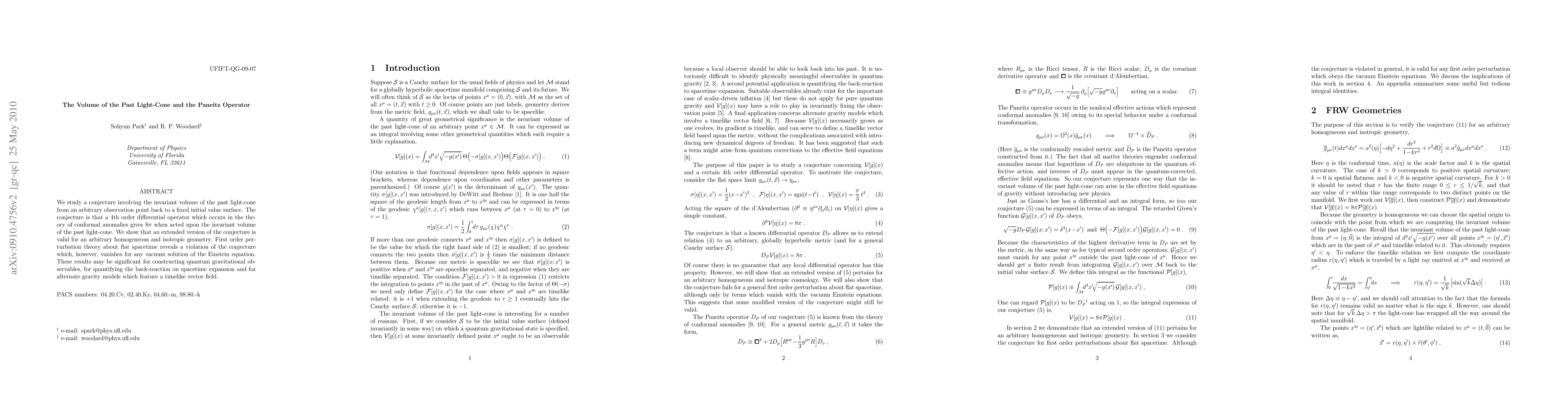 We study a conjecture involving the invariant volume of the past light-cone from an arbitrary observation point back to a fixed initial value surface. The conjecture is that a 4th order differential operator which occurs in the theory of conformal anomalies gives $8\pi$ when acted upon the invariant volume of the past light-cone. We show that an extended version of the conjecture is valid for an arbitrary homogeneous and isotropic geometry. First order perturbation theory about flat spacetime reveals a violation of the conjecture which, however, vanishes for any vacuum solution of the Einstein equation. These results may be significant for constructing quantum gravitational observables, for quantifying the back-reaction on spacetime expansion and for alternate gravity models which feature a timelike vector field.