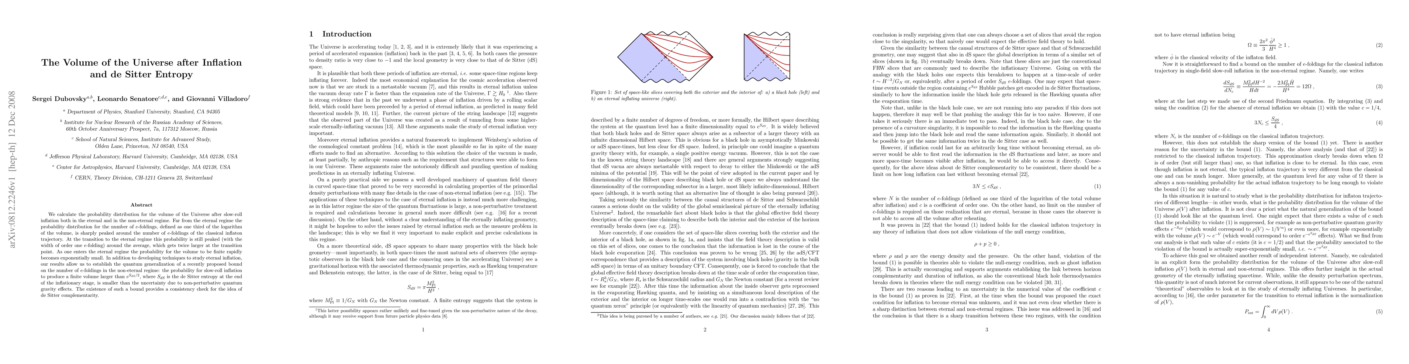 This paper calculates the probability distribution for the volume of the Universe post-inflation, showing that in non-eternal regimes it peaks around classical inflaton values, while in eternal regimes, the probability for a finite volume rapidly diminishes. It also establishes a quantum bound on the volume related to the de Sitter entropy, supporting the concept of de Sitter complementarity.
