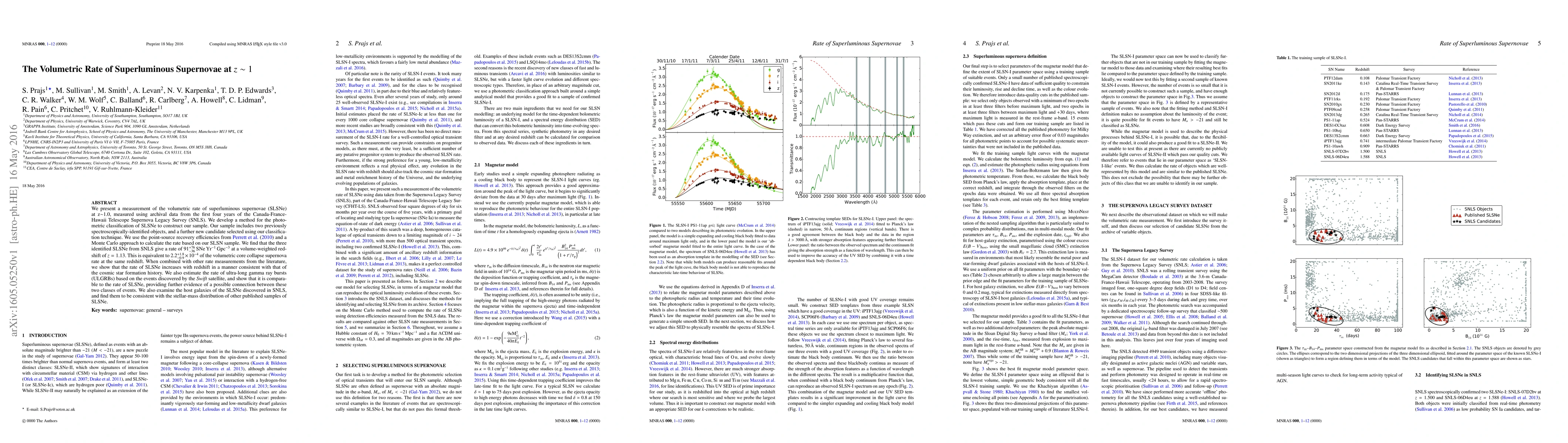 This study measures the volumetric rate of superluminous supernovae (SLSNe) at z~1 using Canada-France-Hawaii Telescope Supernova Legacy Survey data. The researchers developed a photometric classification method for SLSNe, finding a rate of 91 (+76/-36) SNe/Yr/Gpc^3 at z=1.13, equivalent to 2.2 (+1.8/-0.9) x10^-4 of the core-collapse supernova rate. They also show a correlation between the increasing SLSN rate and cosmic star formation history. Additionally, the study suggests a possible link between SLSNe and ultra-long gamma-ray bursts (ULGRBs), observing similar stellar-mass distributions in their host galaxies.