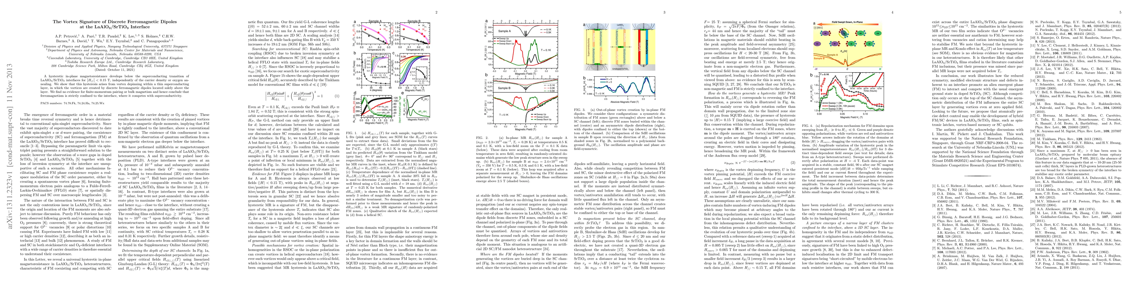 Researchers discover a new phenomenon at LaAlO$_3$/SrTiO$_3$ interfaces where ferromagnetic dipoles create vortices that cause magnetoresistance, strictly confined to the interface.