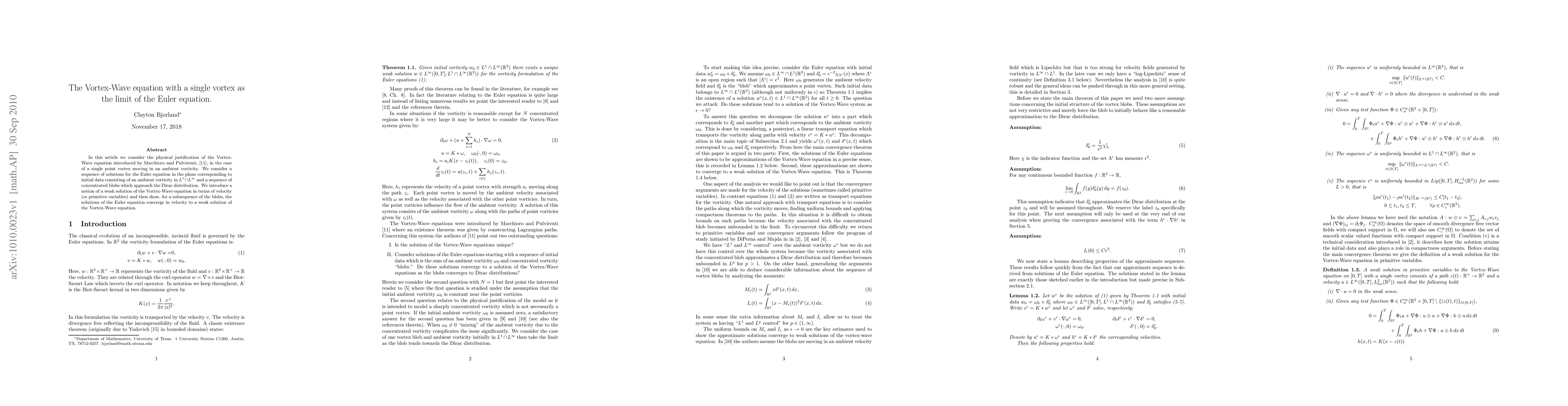 The paper investigates how a single point vortex in an ambient vorticity evolves over time, finding that solutions to the Euler equation converge to a weak solution of the Vortex-Wave equation.