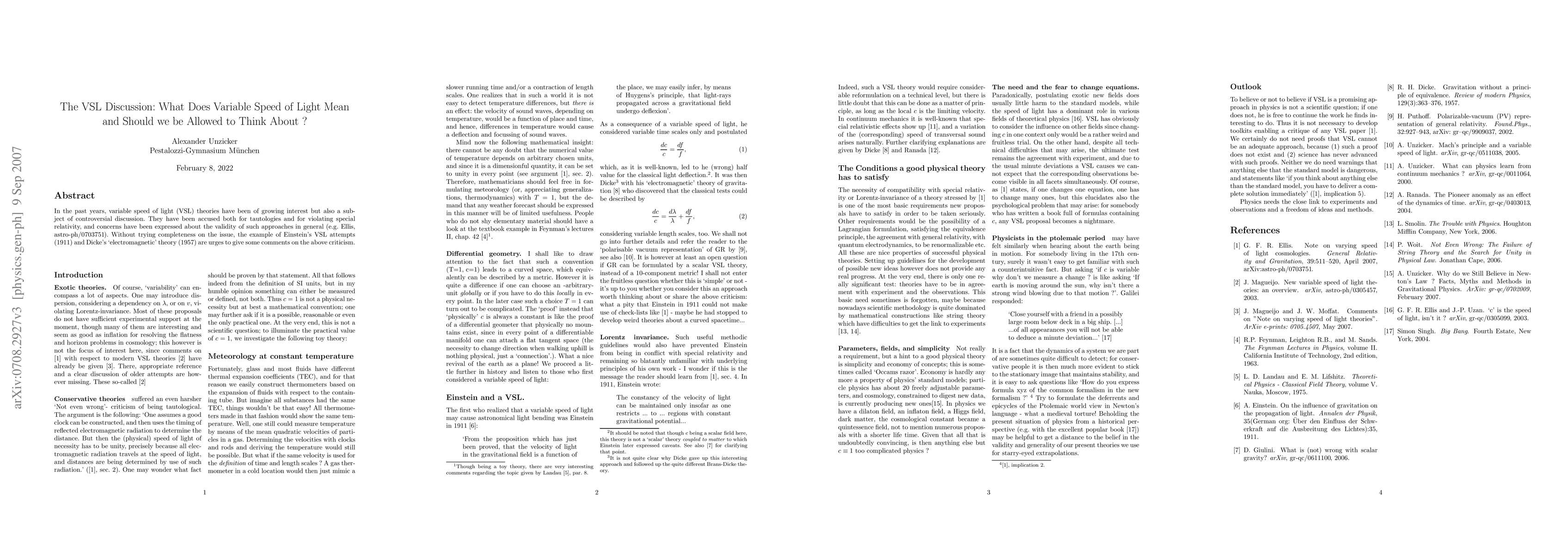 This paper discusses variable speed of light theories, addressing criticisms of tautologies and special relativity violations, while highlighting the importance of considering alternative approaches to understanding time and space.