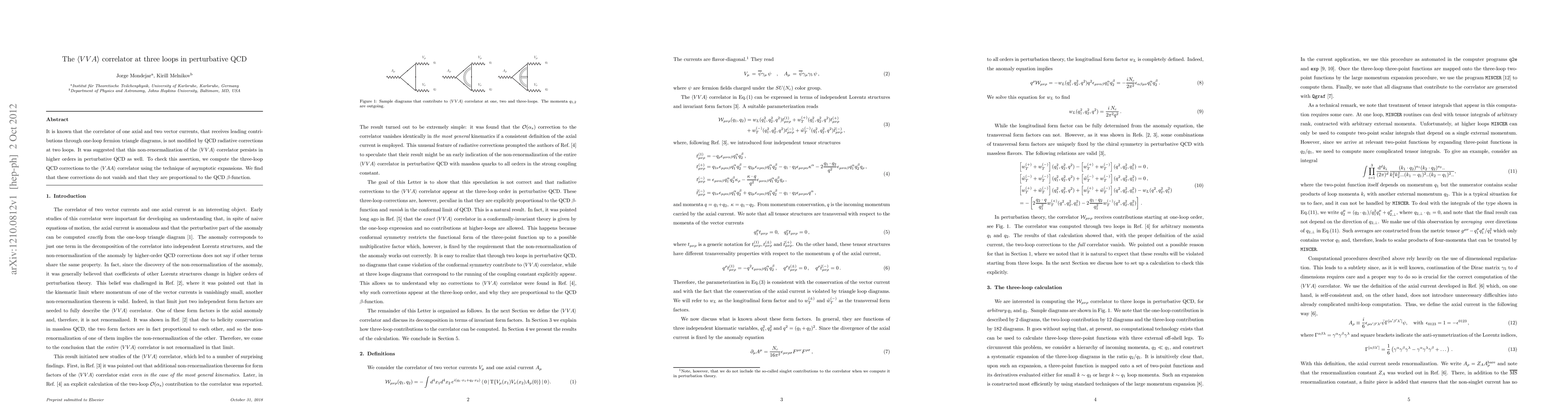 This paper investigates the three-loop QCD corrections to the correlator of one axial and two vector currents, finding that contrary to previous assertions, these corrections do not vanish and are proportional to the QCD beta-function. The study uses asymptotic expansion techniques to reach this conclusion.